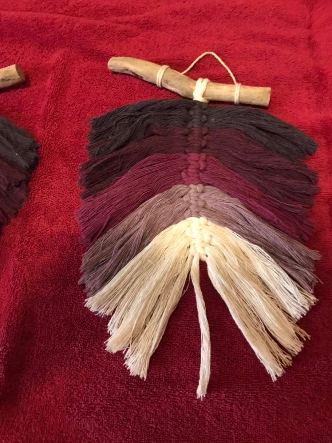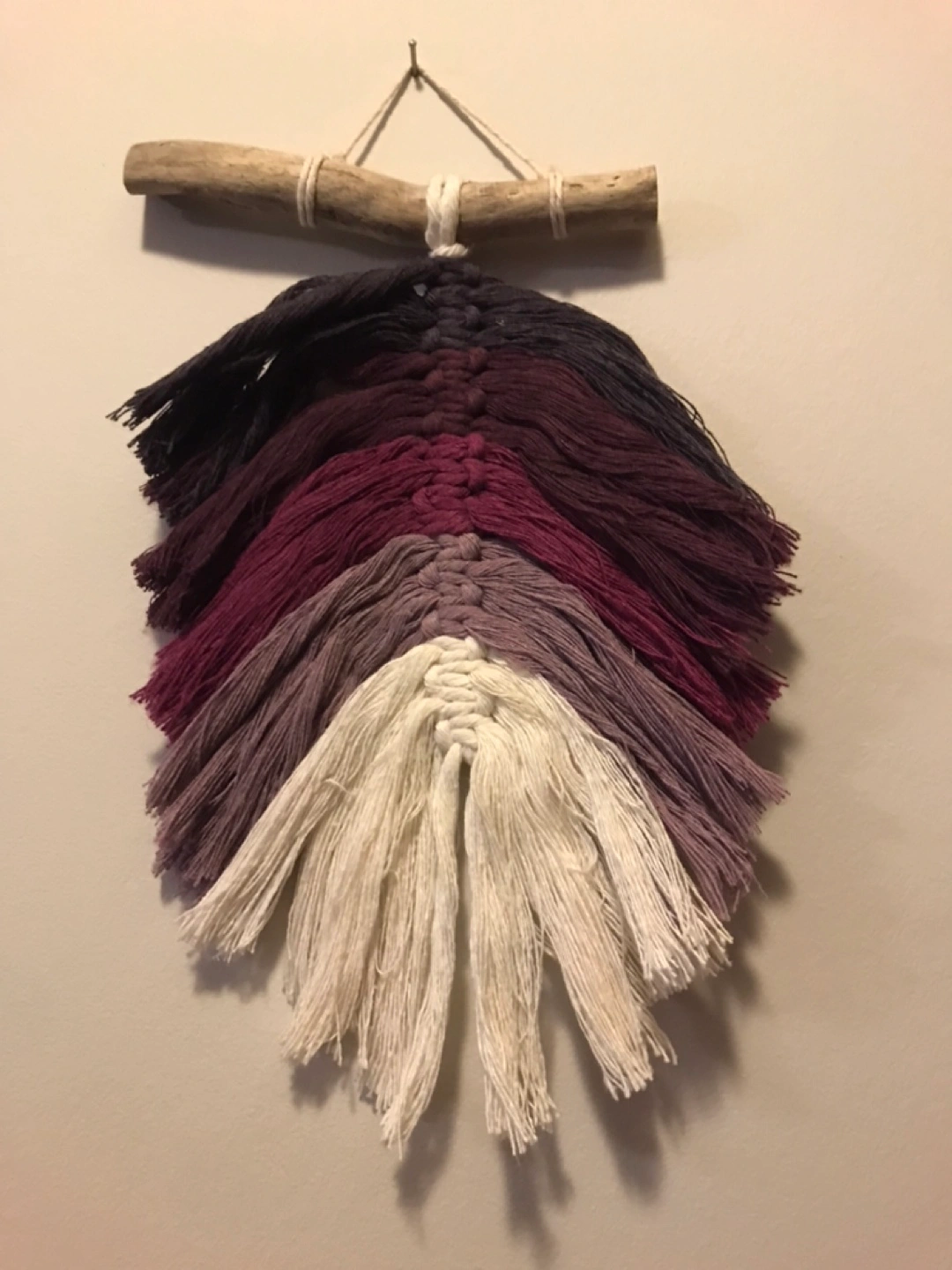 I'm selling a handcrafted macrame feather wall hanging. It's a unique piece of decor that adds a touch of bohemian style to any room. The feathers are made with different shades of yarn, Perfect for adding a cozy and artistic vibe to your space!
