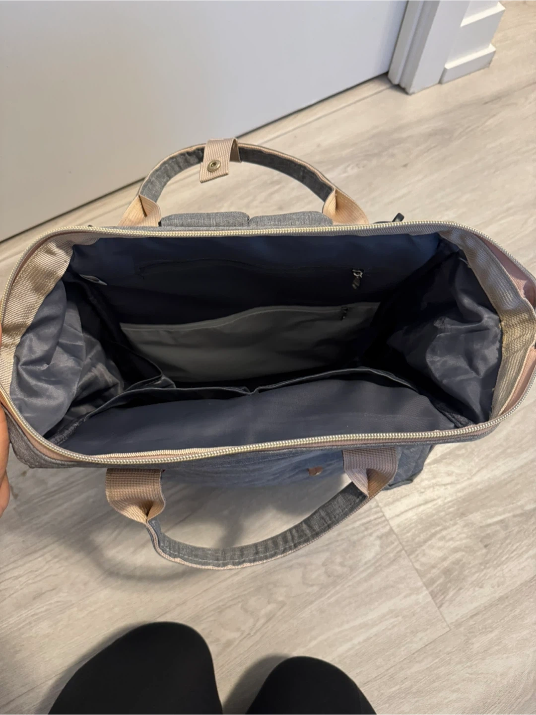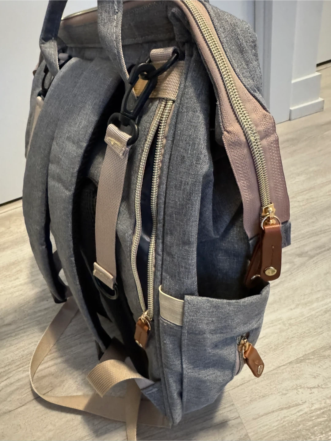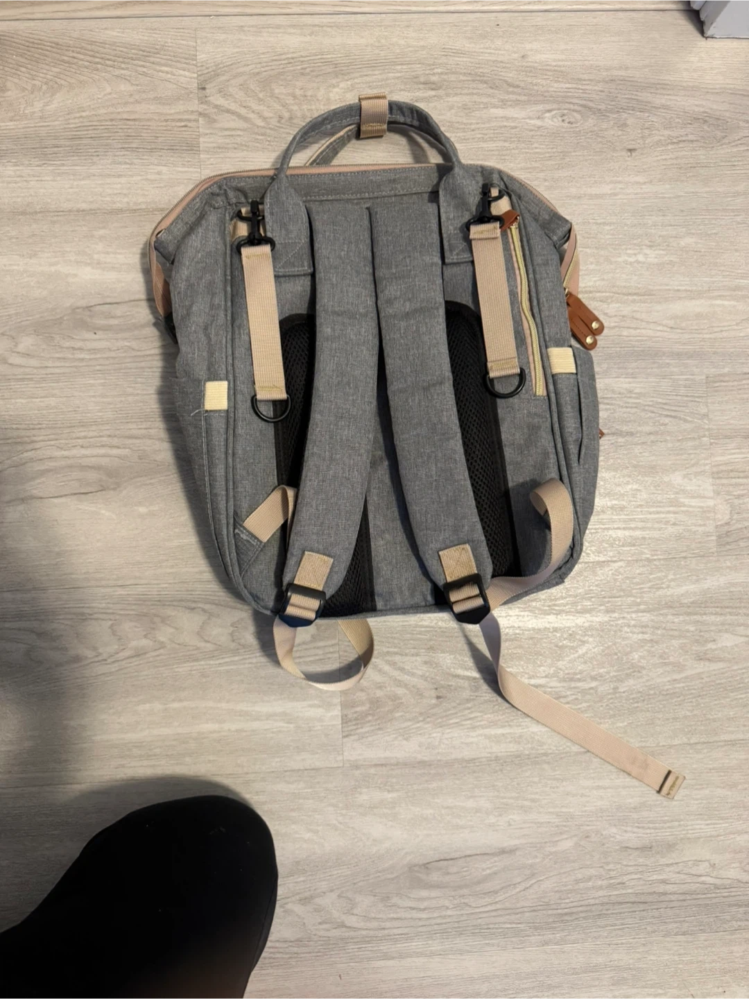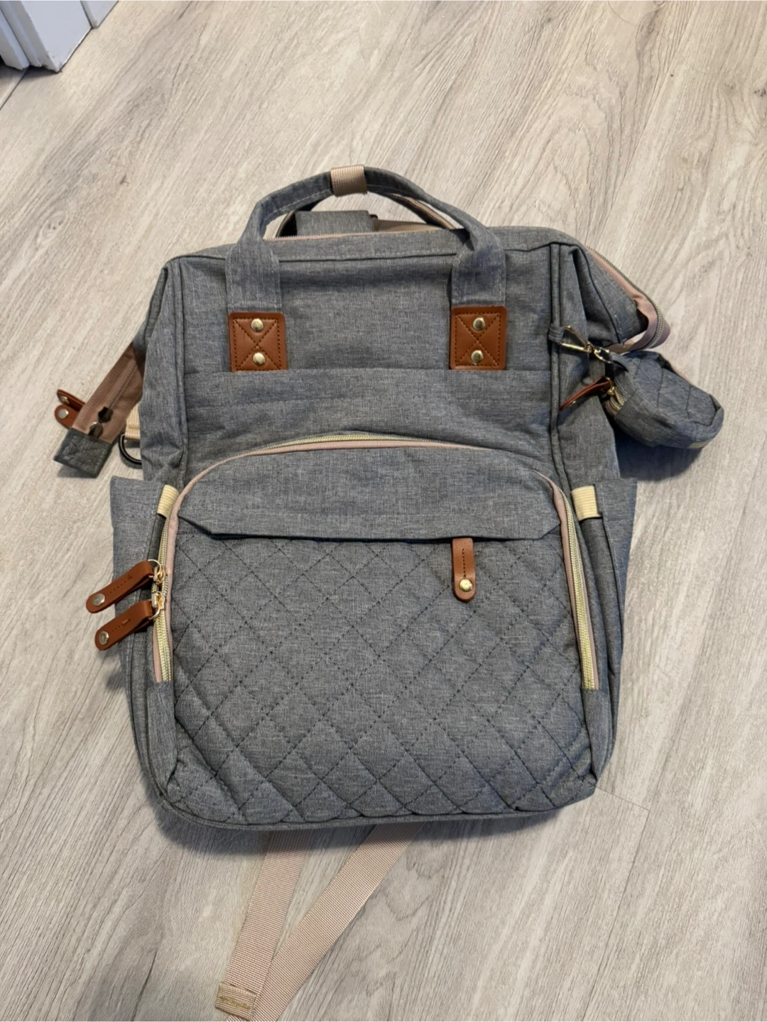 Selling a brand new grey diaper bag backpack. It's in great condition and has lots of compartments to keep everything organized. Perfect for parents on the go!