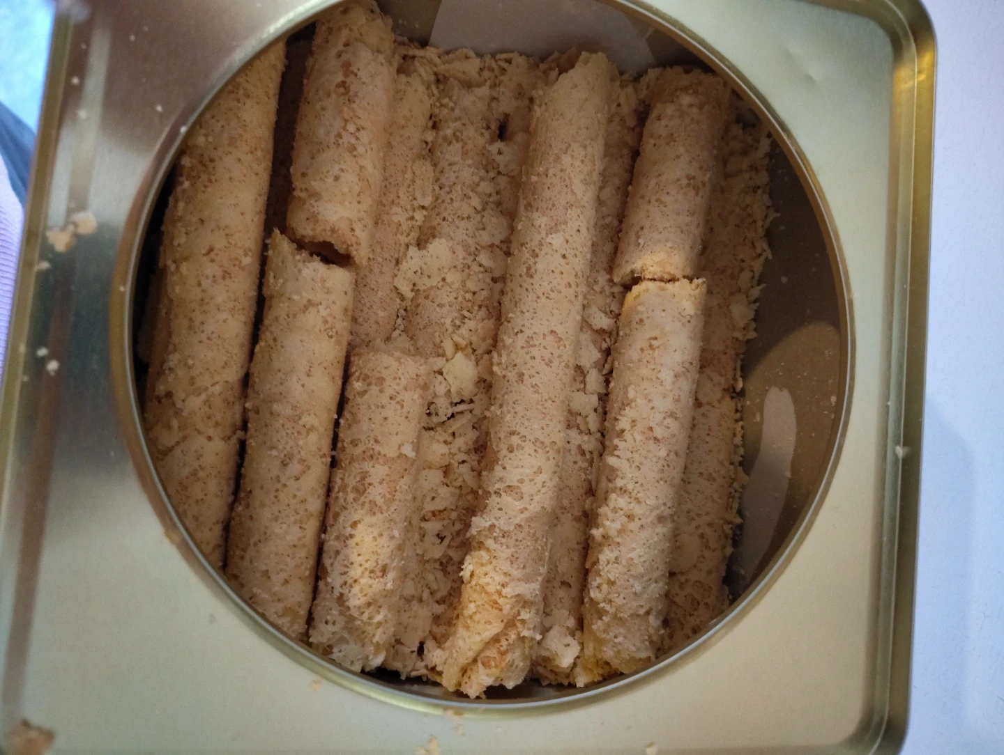Selling a tin of Ching Kee Cookie Rolls! The net weight is 500g. Perfect for a snack or to share with friends and family. Ate a bit so I'm doing it free.