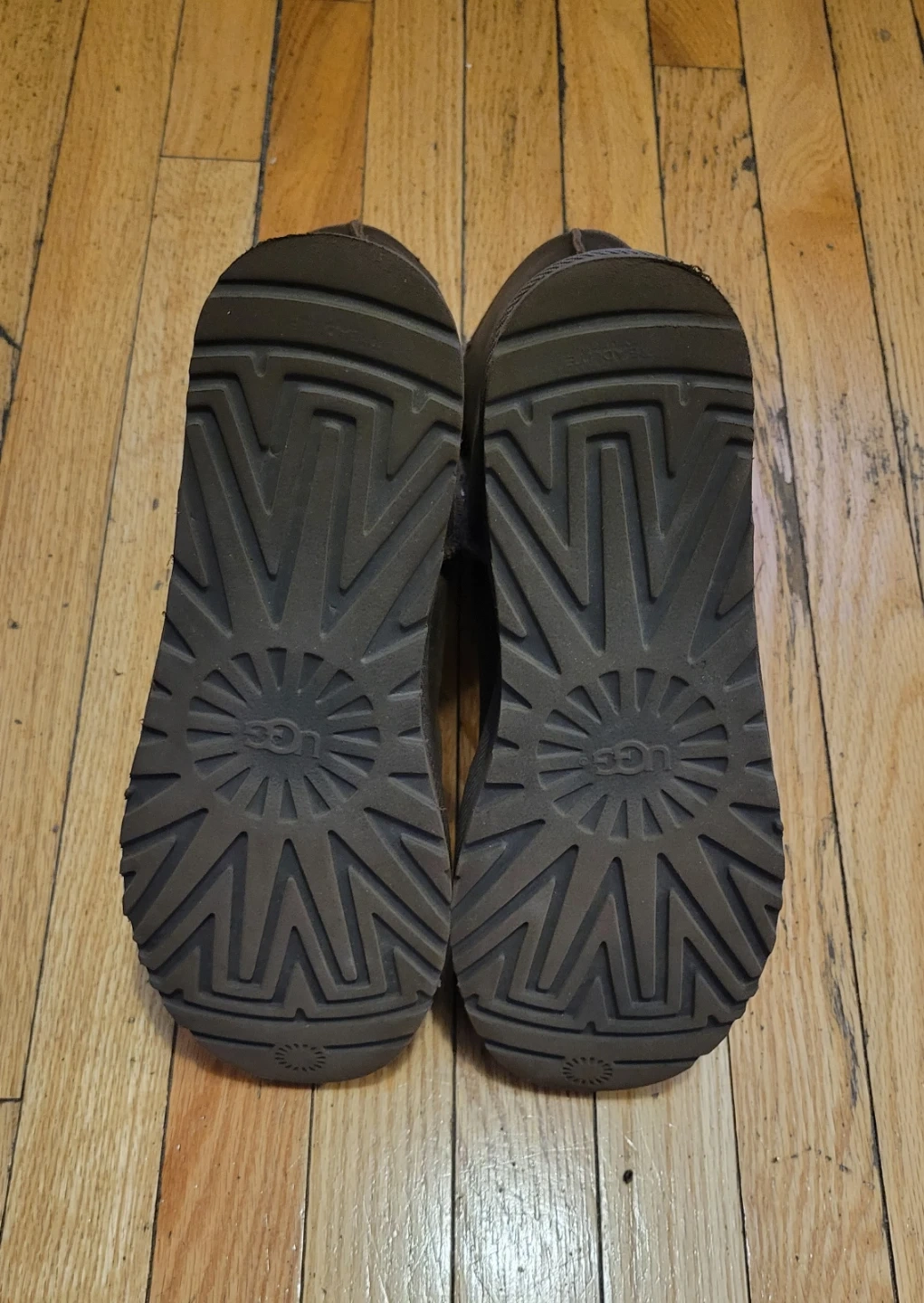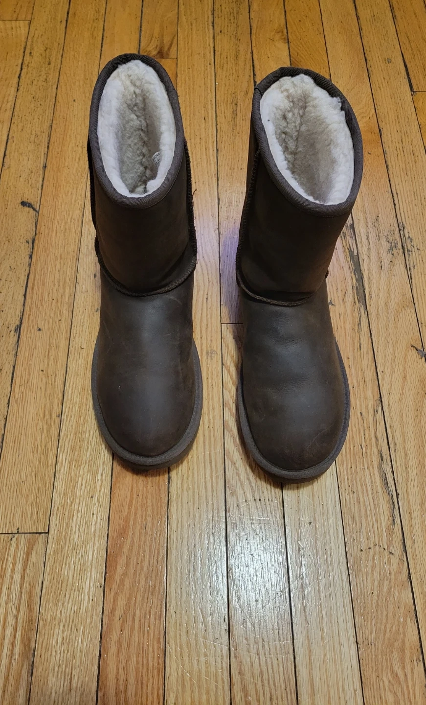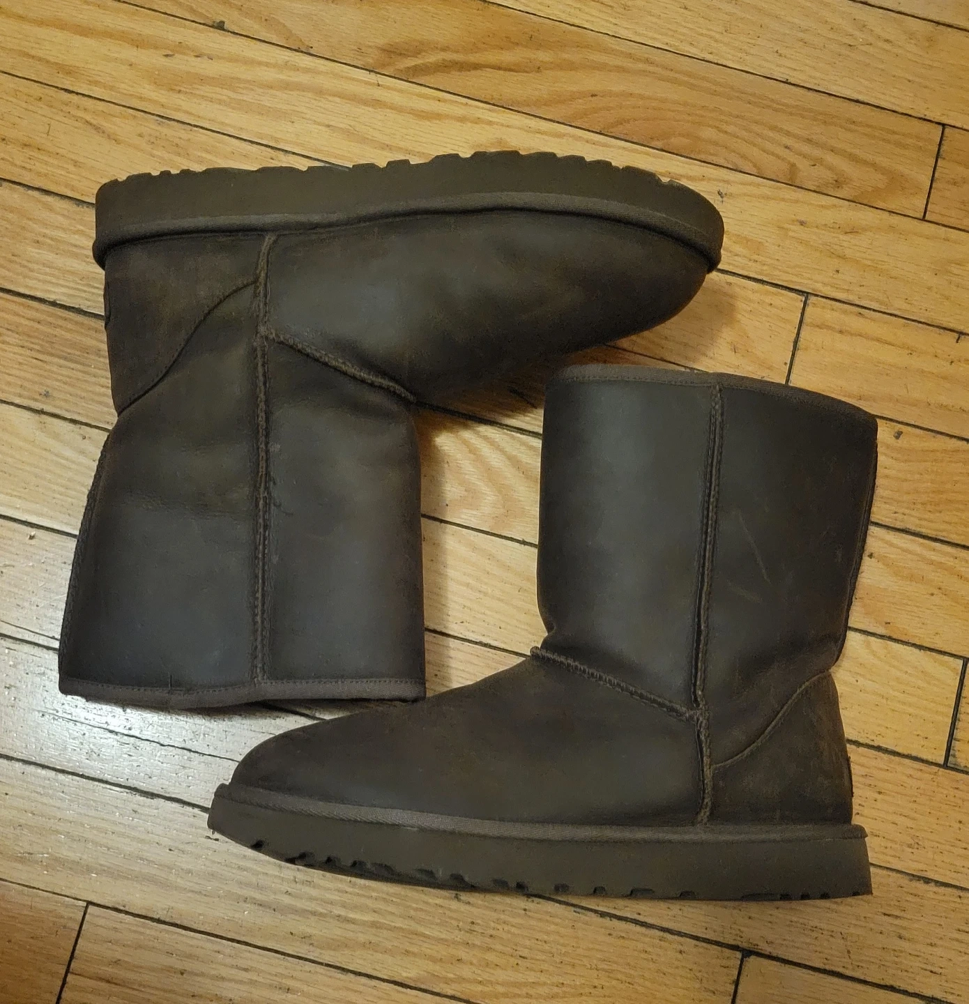 Selling a pair of UGG leather boots in size 11. They're in good condition and ready for a new owner! The boots are made of leather and have a warm, cozy lining. Perfect for the colder months!