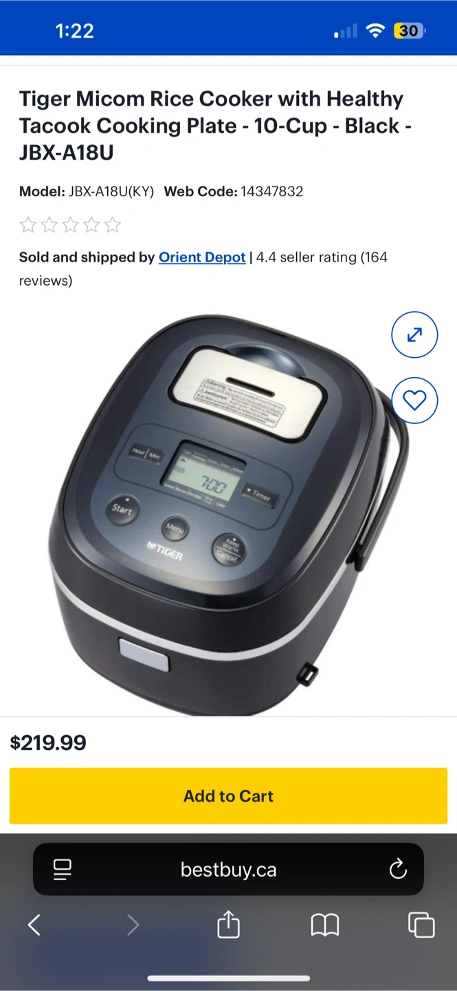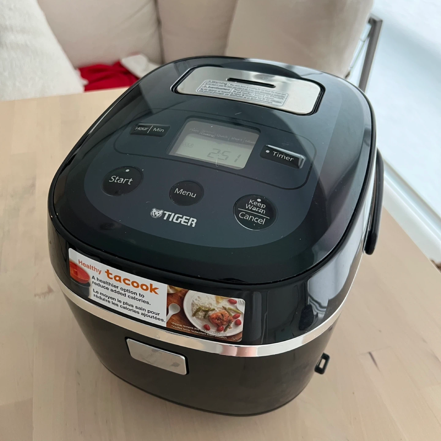 Selling a Tiger Micom Rice Cooker with Healthy Tacook Cooking Plate. It's a 10-cup rice cooker in black. This model is the JBX-A18U. Originally bought for $248
