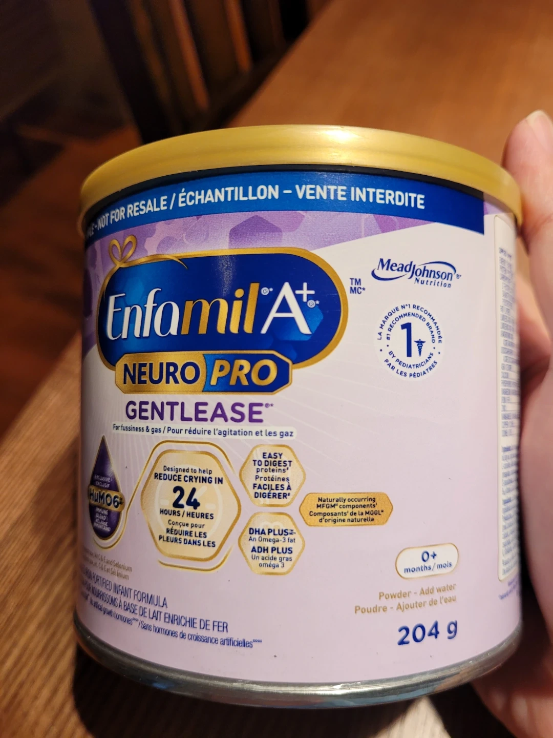 I have some Enfamil A+ NeuroPro Gentlease formula available. It's designed for fussiness and gas, and comes in a 204g size.