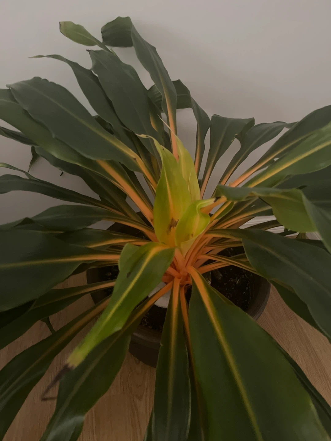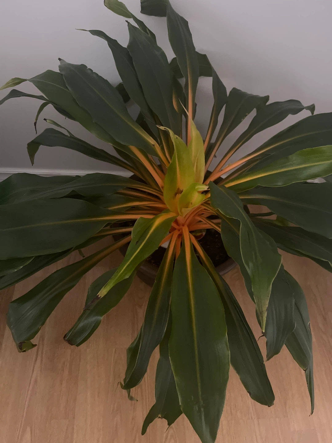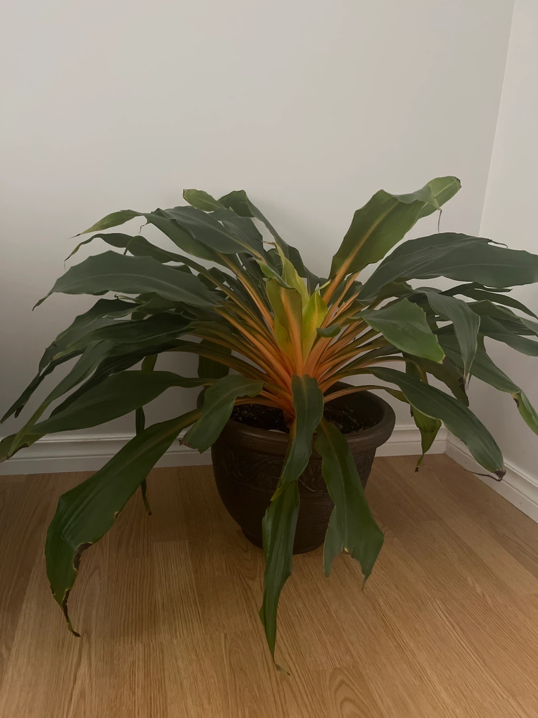 Selling a healthy orange spider plant! It's a beautiful addition to any home and easy to care for. The plant is in a brown pot and has vibrant green leaves with orange centres