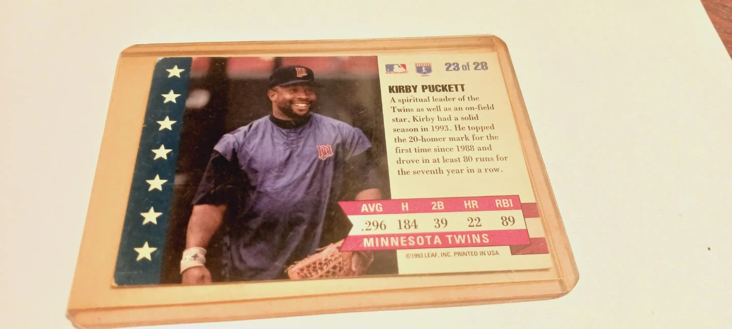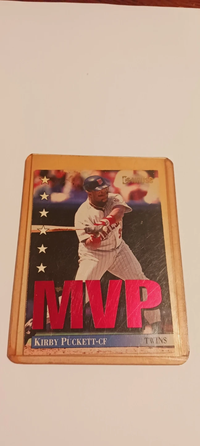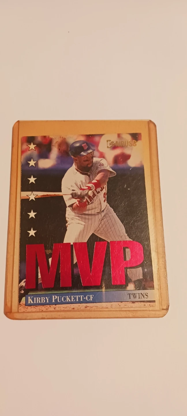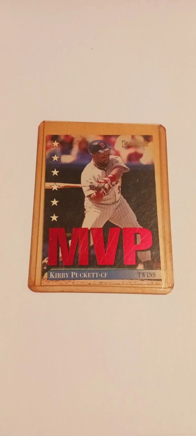 MVP KIRBY PUCKETT COLLECTIBLE 1993. BASEBALL CARD in plastic protective sleeve. ALL MY PRICES ARE NEGOTIABLE !! I HAVE MANY MANY MORE BASEBALL CARDS FROM DIFFERENT YEARS......LET ME KNOW IF INTERESTED IN BUYING COLLECTIONS.....