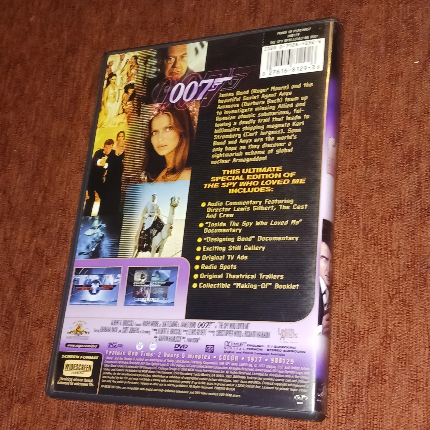 Selling The Spy Who Loved Me Special 007 Edition DVD. This ultimate special edition includes audio commentary, documentaries, still gallery, TV ads, radio spots, original theatrical trailers, and a collectible booklet. Feature run time: 2 hours 5 minutes