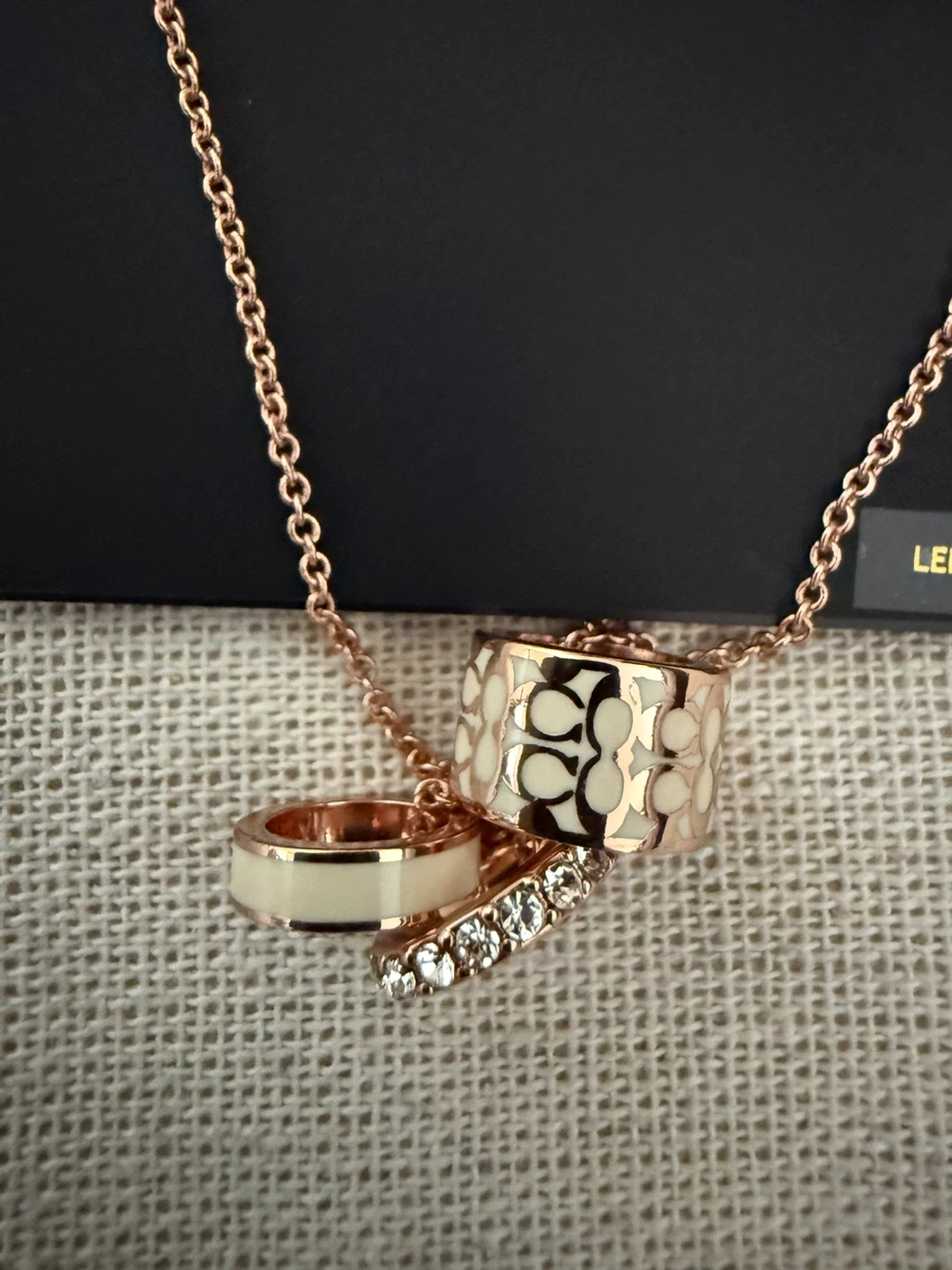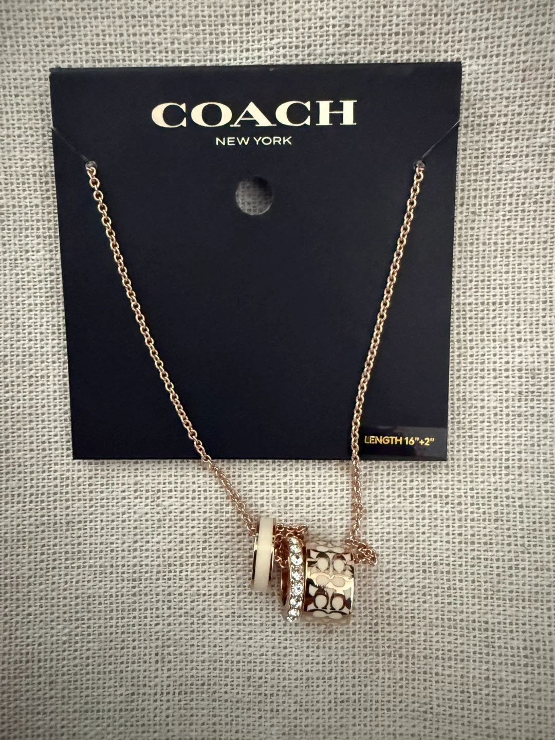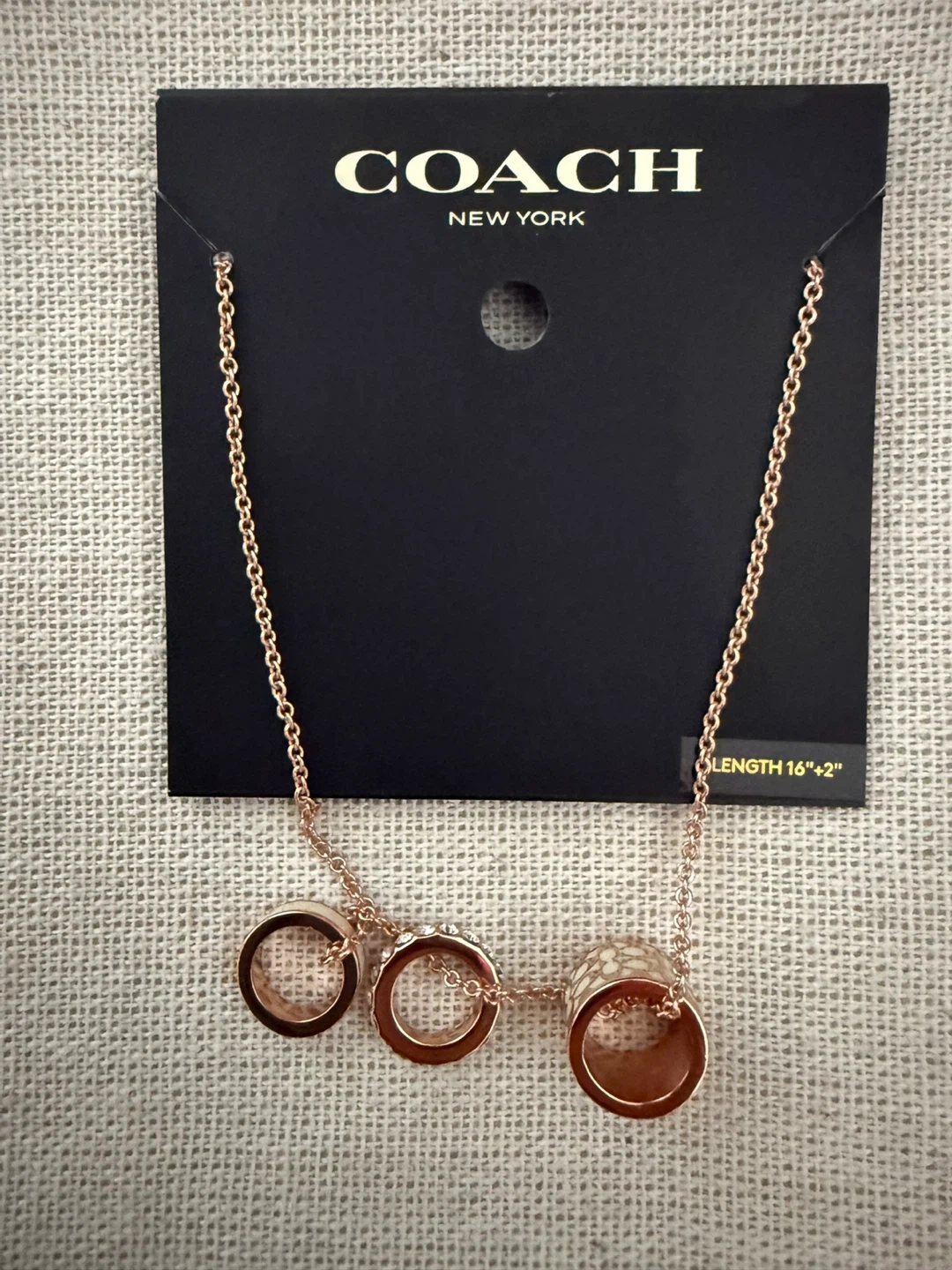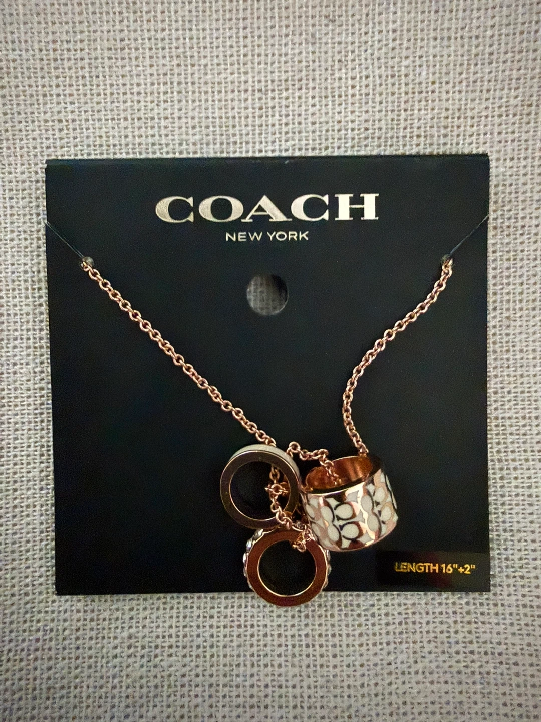 βοΈ βοΈ Authentic COACH NEW YORK Signature Enamel Interlocking Circle Necklace in a beautiful rose gold colour and it features the iconic Coach logo in one of the charms.