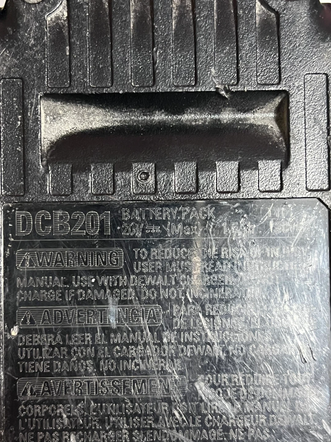 Selling a DeWalt 20V Max battery pack. It's a DCB201 model and has a 2.0 Ah capacity. Perfect for your DeWalt tools