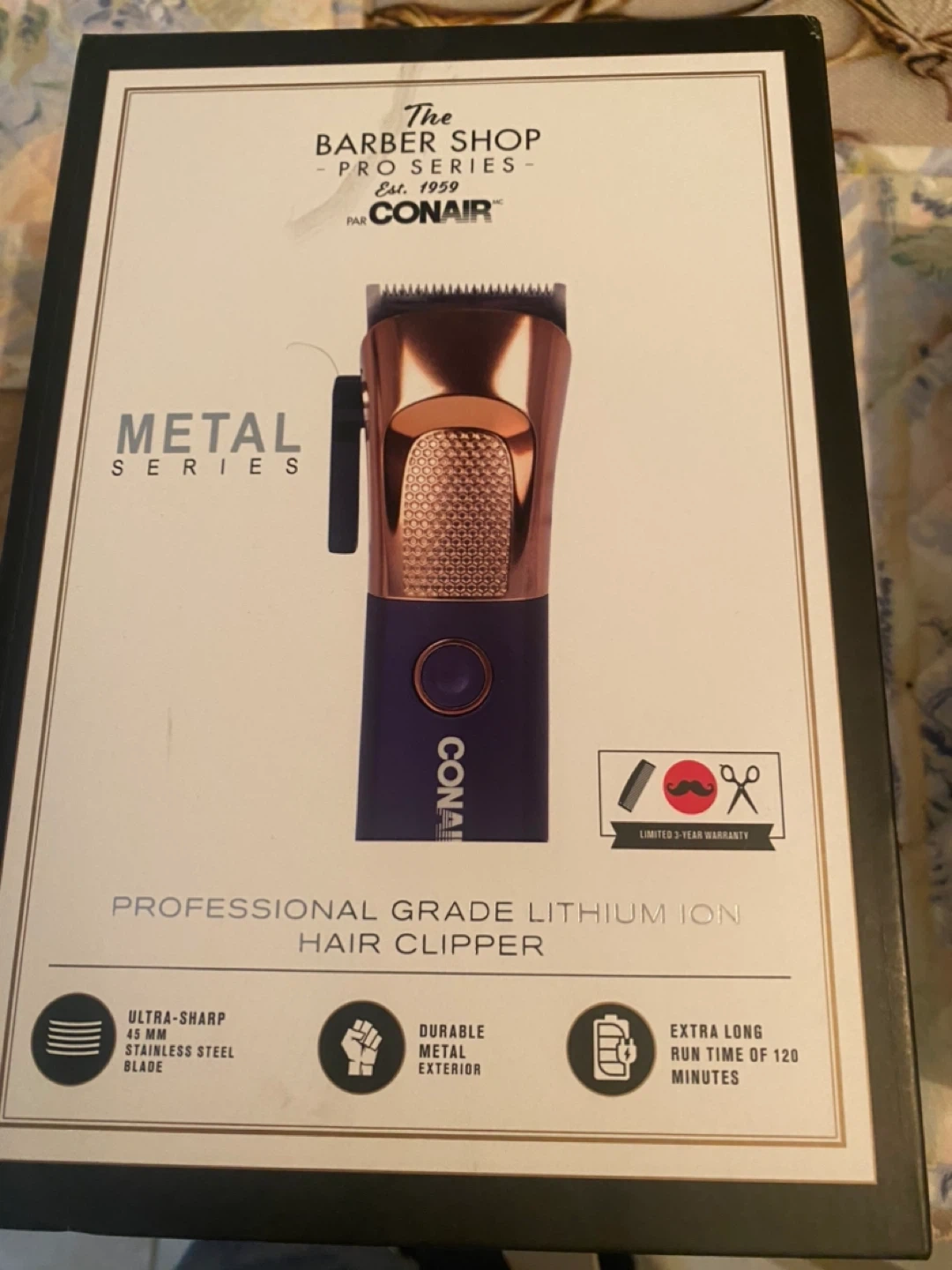 Selling a brand new Conair The Barber Shop Pro Series hair clipper! It's a professional grade lithium ion hair clipper with an ultra-sharp 45 mm stainless steel blade. It also features a durable metal exterior and an extra long run time of 120 minutes. Comes in the box!