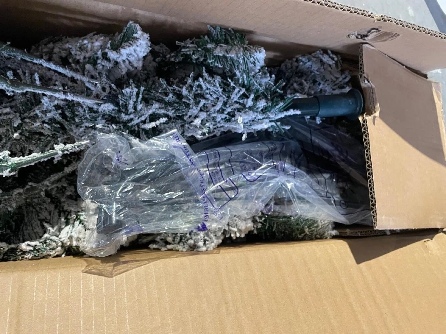Selling a beautiful 6ft snow-flocked Christmas tree, perfect for adding a festive touch to your home this holiday season.