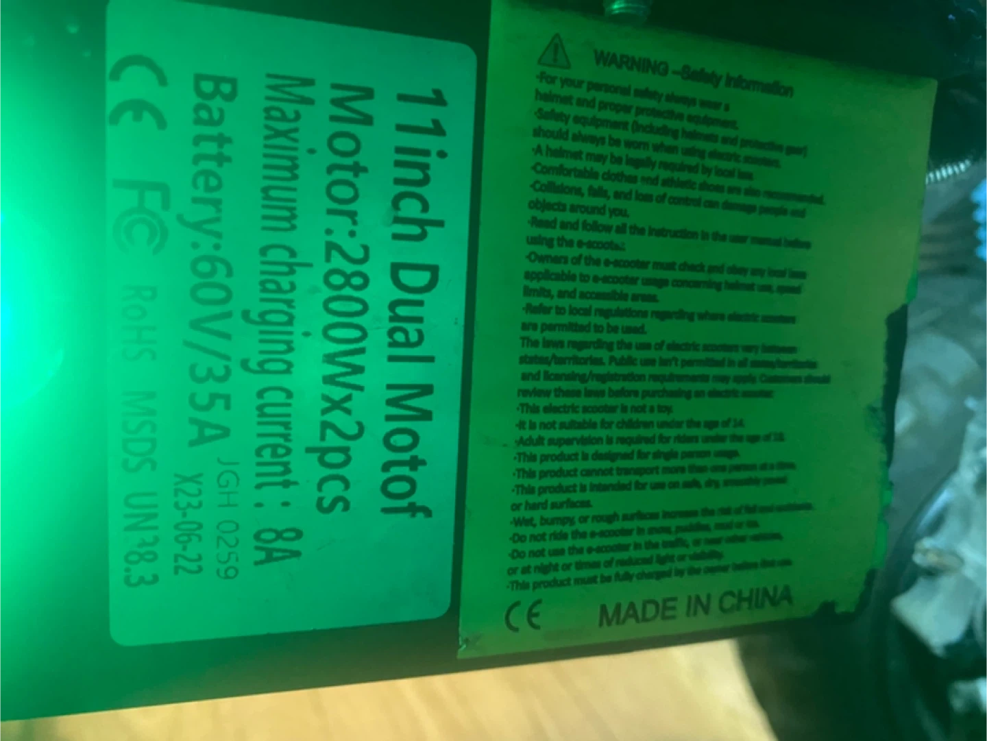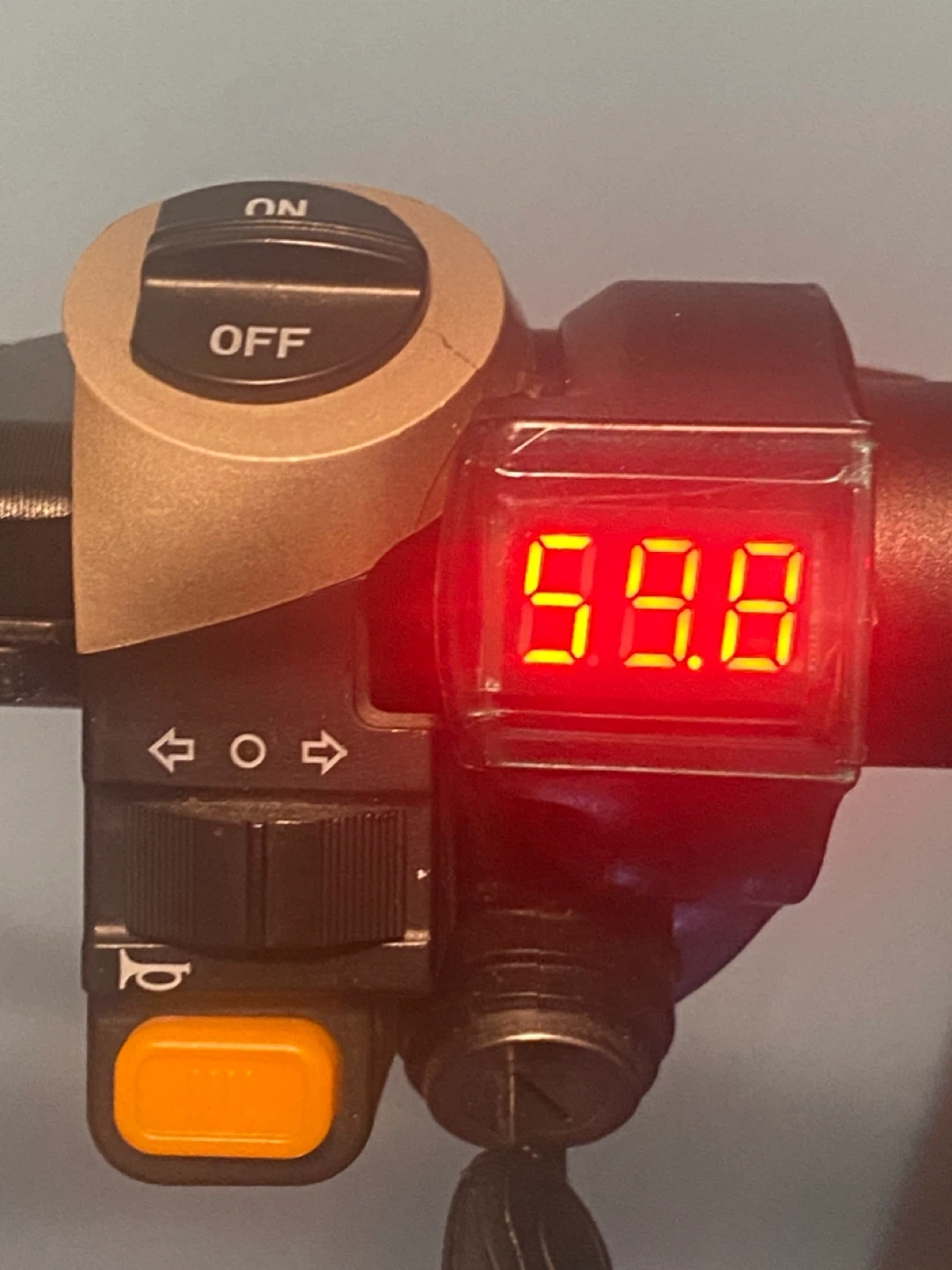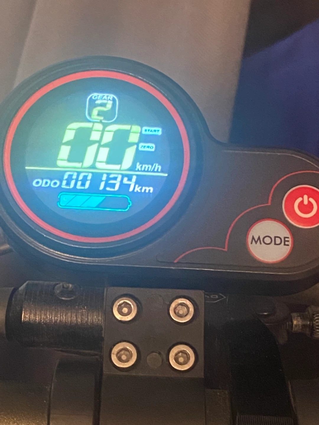 Selling a used electric scooter. It shows some wear and tear, but it's still functional. The odometer reads 134 km. The speedometer goes up to 59.8 km/h. Good for getting around town!