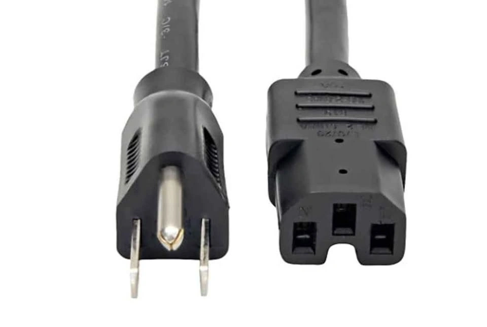 Heavy-duty C15 power cable connects a device with a C16 power inlet to a wall outlet/ PDU or UPS system. Recommended for powering PoE switches with high-wattage power supplies. 8ft length allows flexibility in placing devices while avoiding cable clutter. NEMA 5-15P to C15 cable replaces or upgrades original manufacturer’s power cord. Thick 14 AWG wire gauge manages high power levels required for larger equipment. power extension cable/ C15 Power Cord. Tripp Lite's 5-15P -to- C15 power cords allow connection from high voltage network hardware utilizing C15 type connectors electrical outlets with 5-15R type inputs. Heavy-duty 14AWG wire supports voltages up to 125V. Molded ends ensure a lifetime of use. Feel free to message if you have any questions!