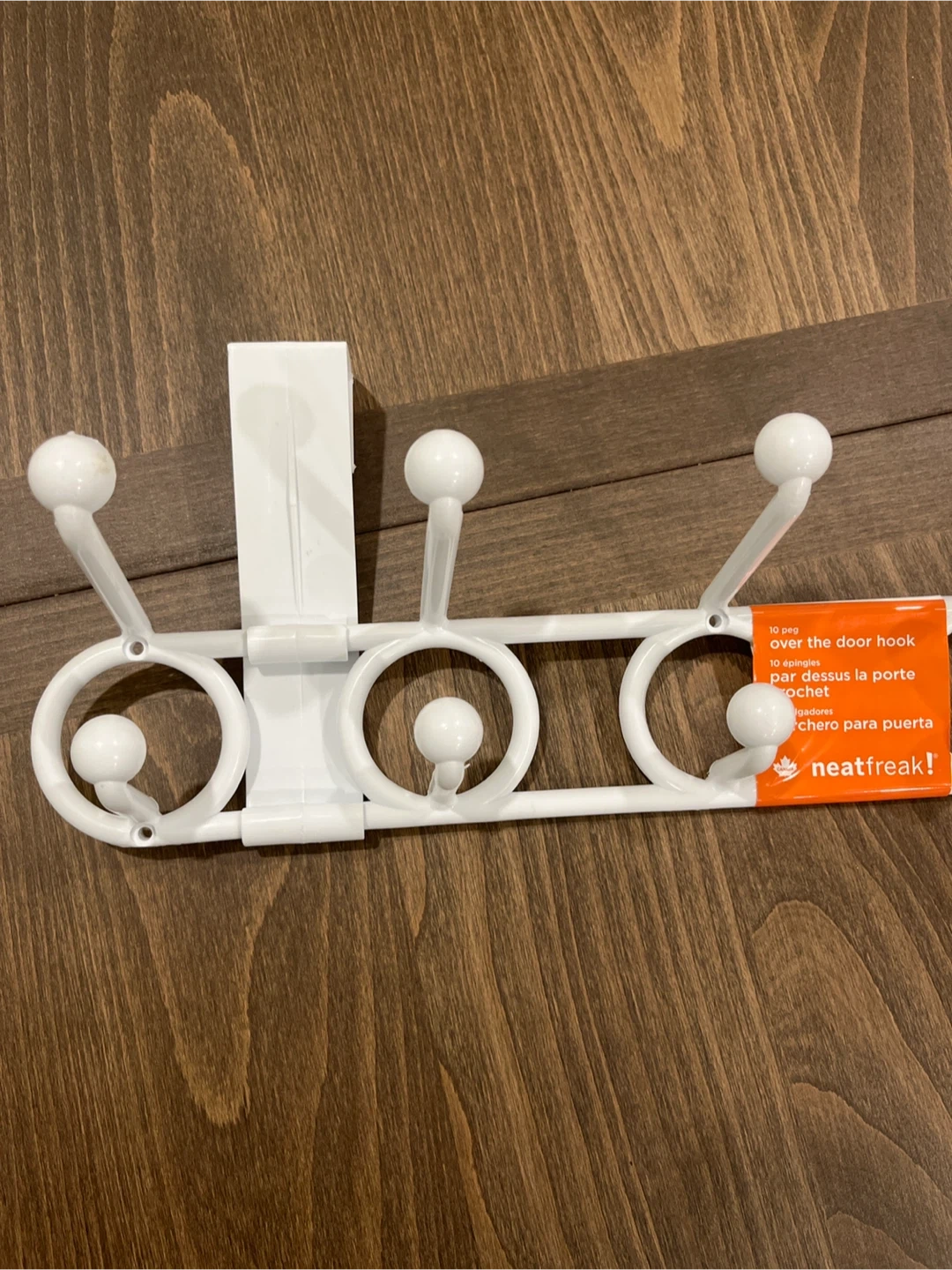 This is a Neatfreak! over-the-door hook rack that was never usef. It has 10 pegs for hanging items. Great for adding extra storage to any room!