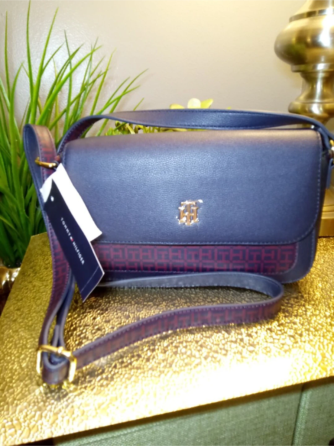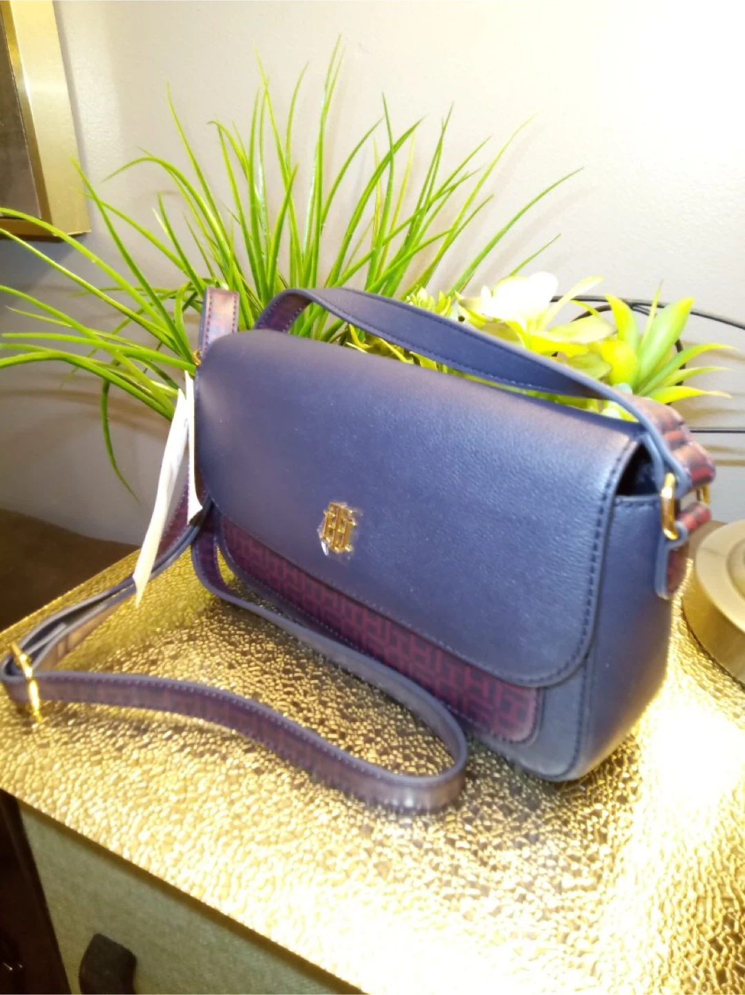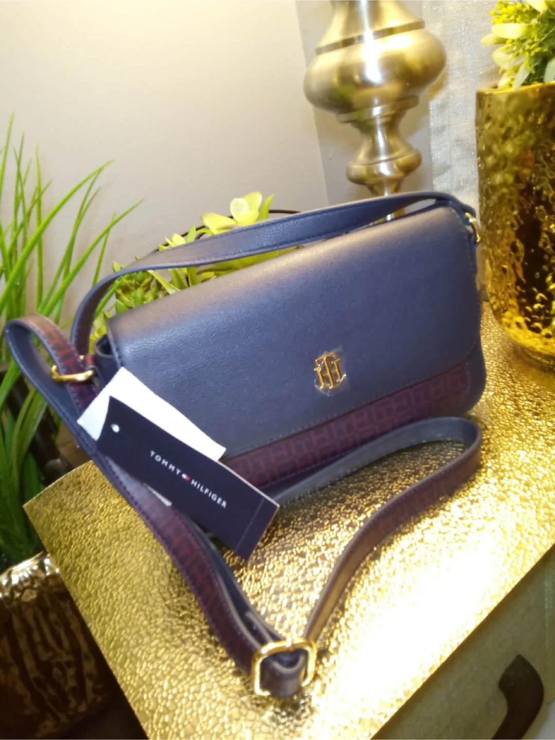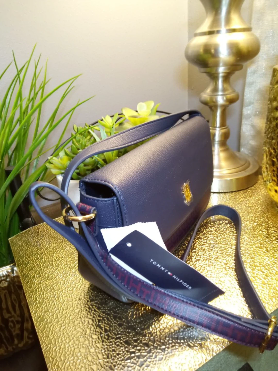 This is a Tommy Hilfiger crossbody bag in navy. It's perfect for everyday use and still has the tags on it!