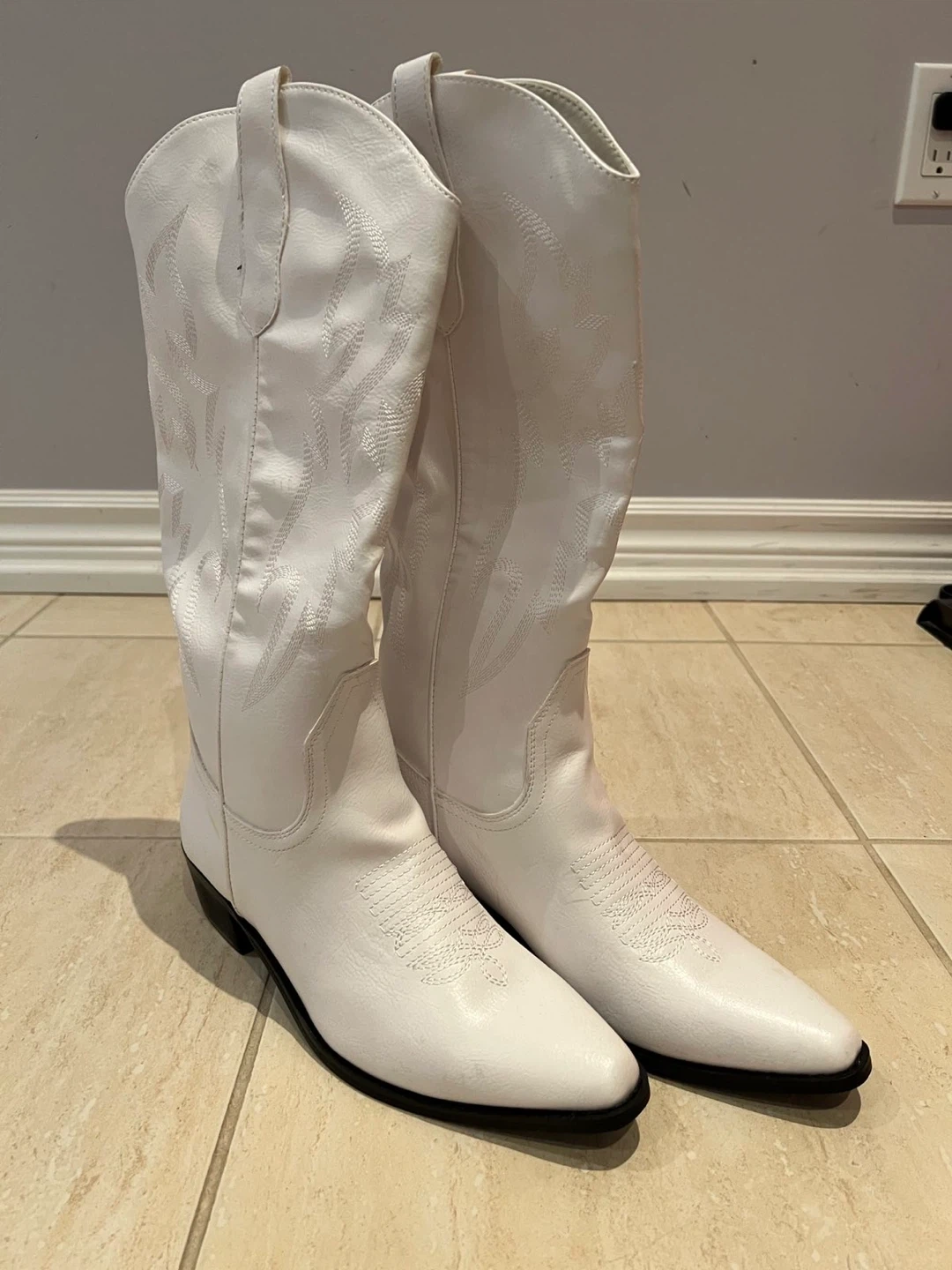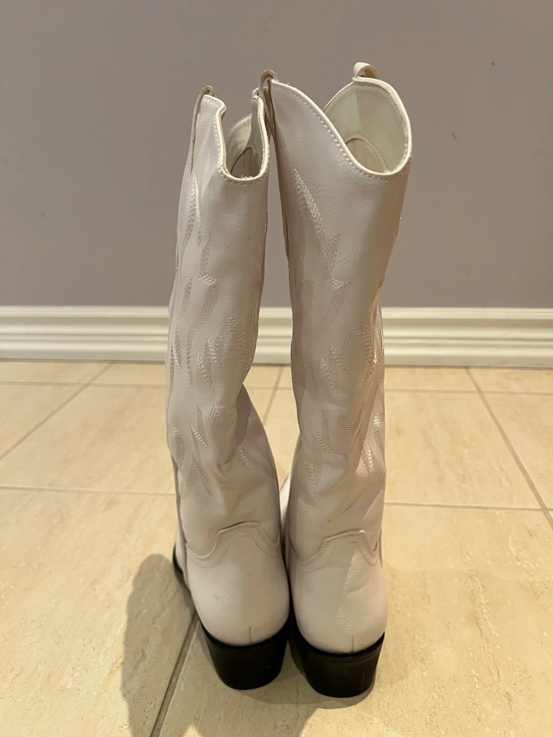Selling a pair of white cowboy boots. They're in good condition and ready for a new owner!