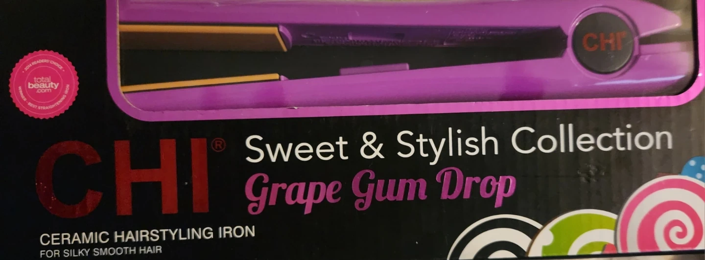 I'm selling a brand new CHI Sweet & Stylish Collection Grape Gum Drop ceramic hair straightener! It's in its original box.