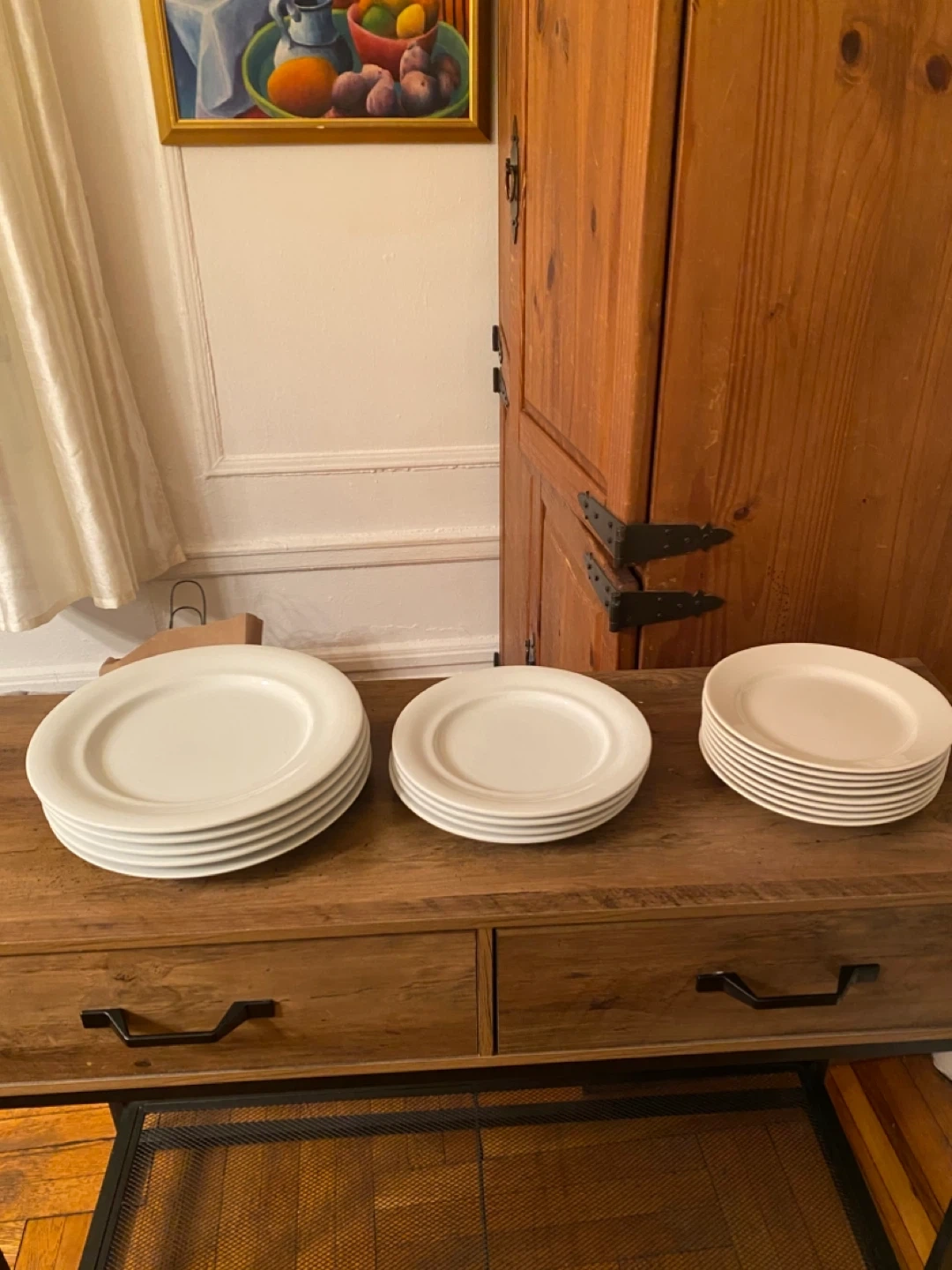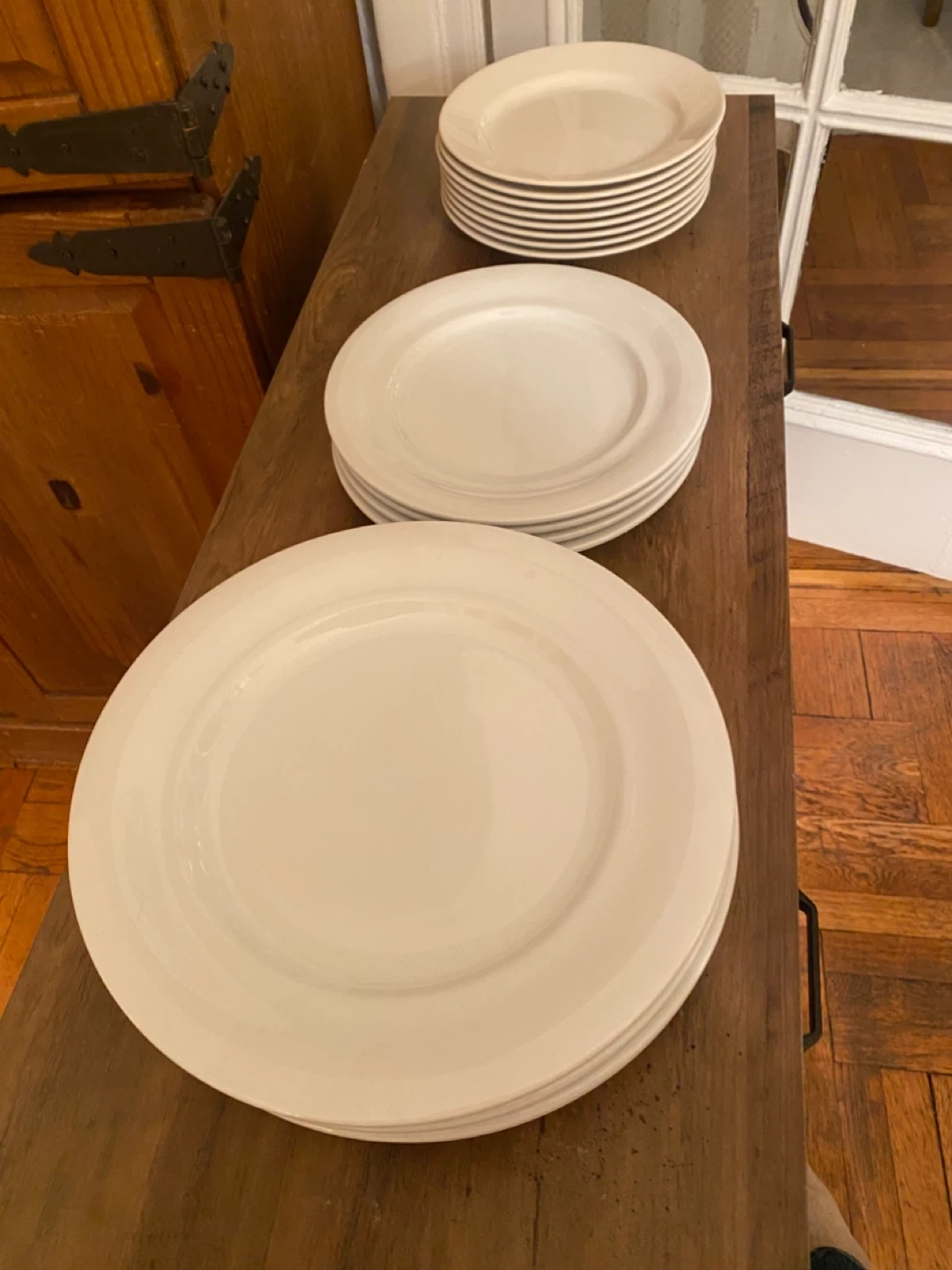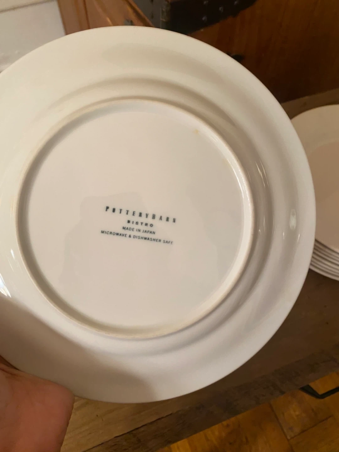 Selling a set of Pottery Barn Bistro dinner plates in white! They are microwave and dishwasher safe. Made in Japan. 5 dinner plates and 4 salad plates and additional 8 salad plates all for $25