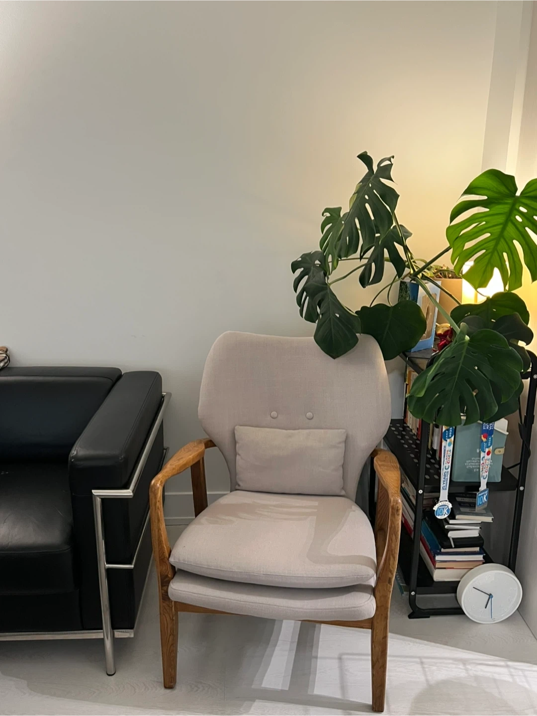The beige colour is neutral and easy to match with other furniture. It also comes with a small pillow for extra comfort!