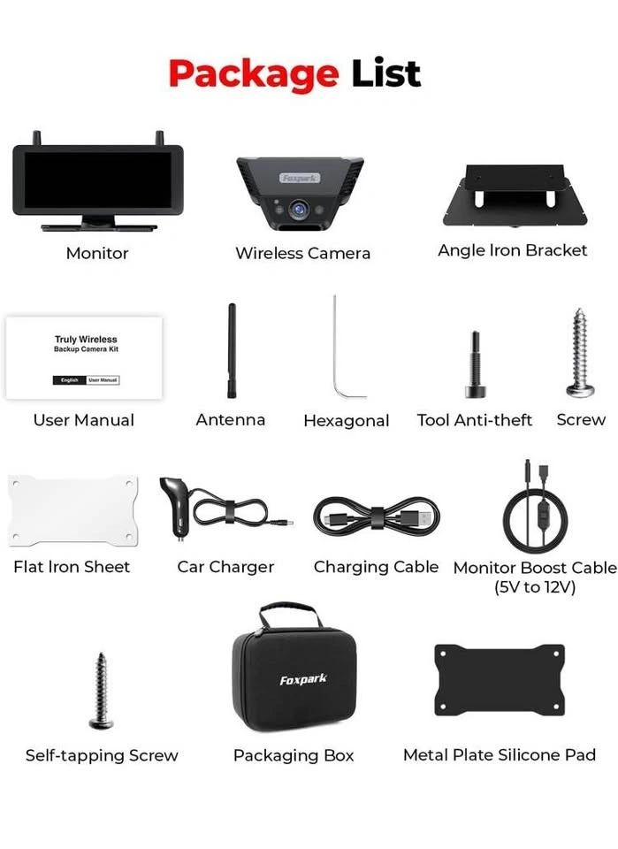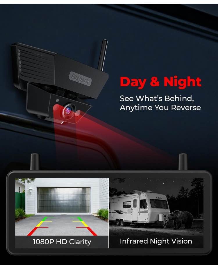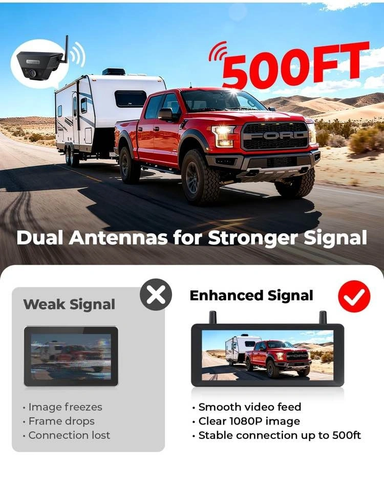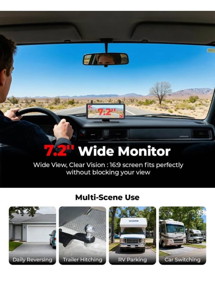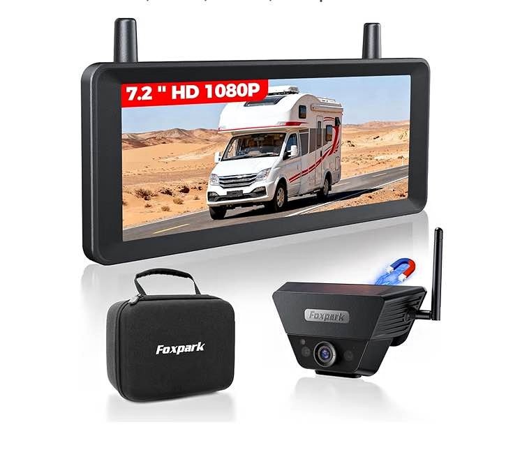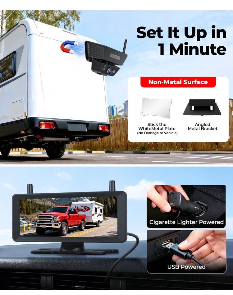 Wireless Backup Camera Solar Magnetic: 7.2‘’ 1080P HD Split-Screen Monitor with Strong Signal, 1Min Easy Install, DVR Recording, Portable Storage Bag, Back up Camera for RV, Truck, Trailer, Camper