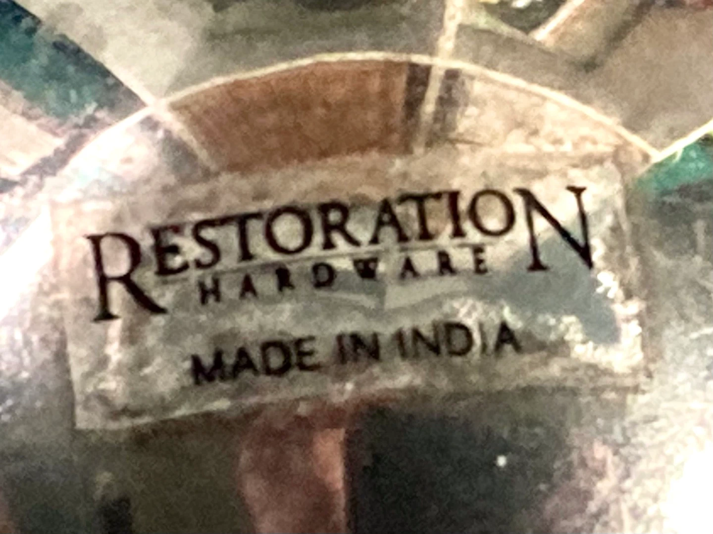 - sticker at the base says Restoration Hardware, made in India.