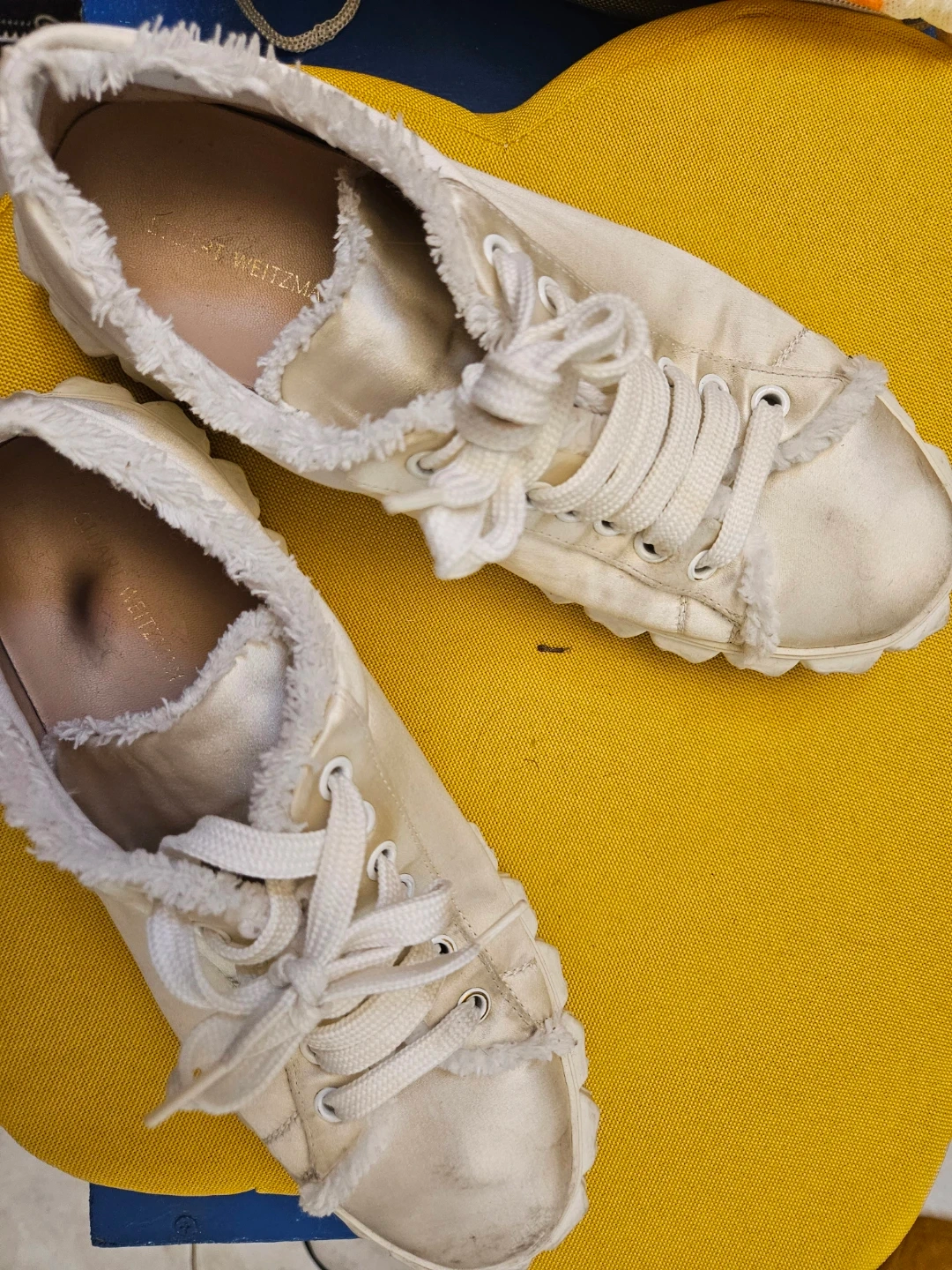 Selling a pair of Stuart Weitzman sneakers in white. They show some signs of use, but still have lots of life left! Perfect for casual wear.