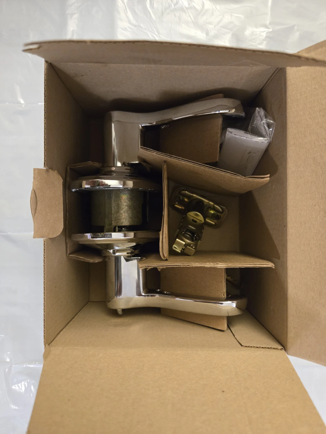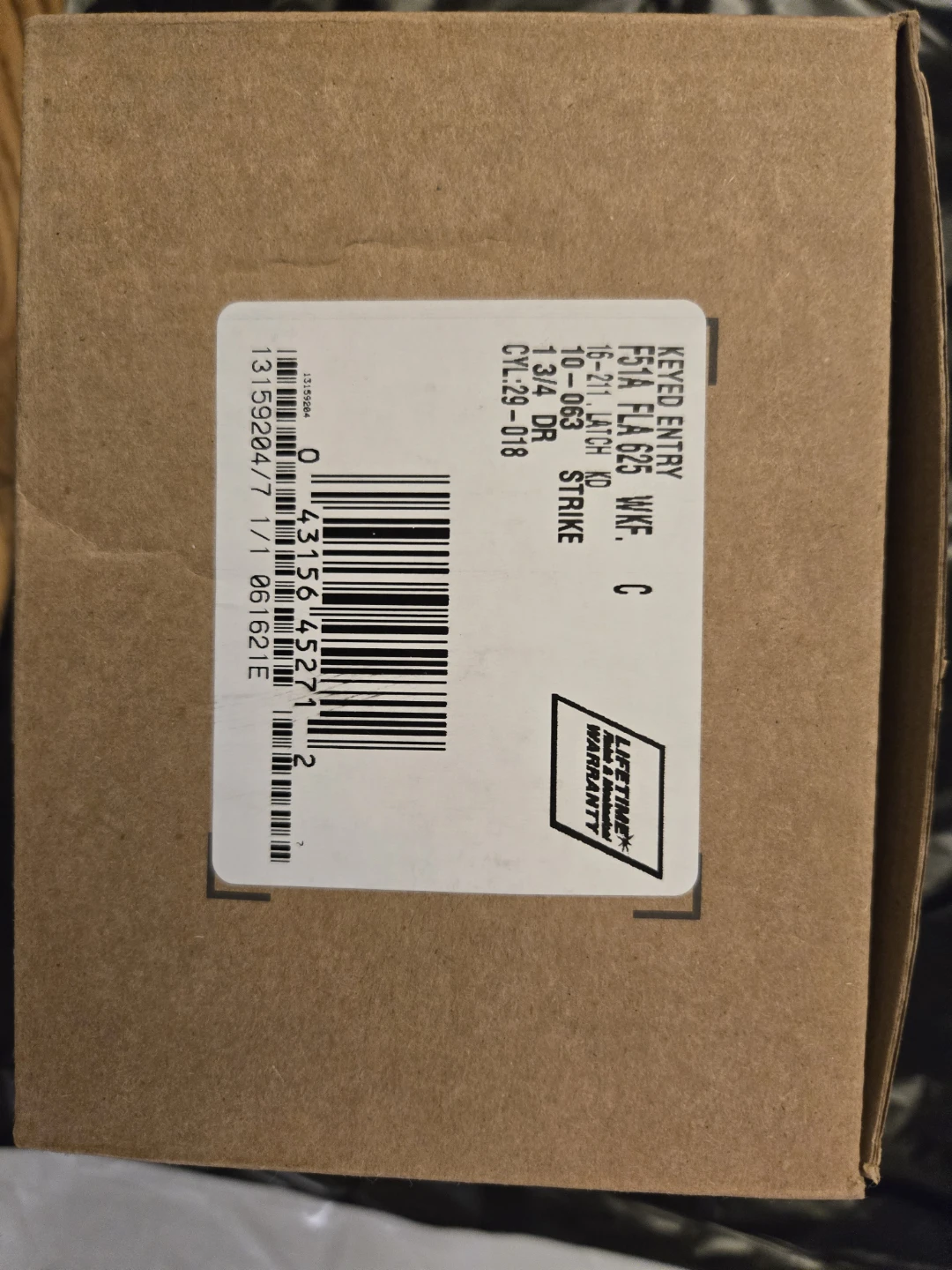 Selling a brand new Schlage Keyed Entry lockset. It's in its original box and includes all the components. The latch is 16-21 and the strike is 10-063. The bore size is 1 3/4 DR CYL28-018.