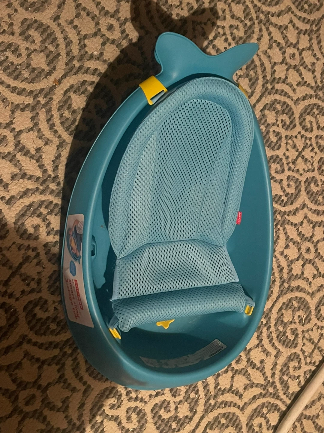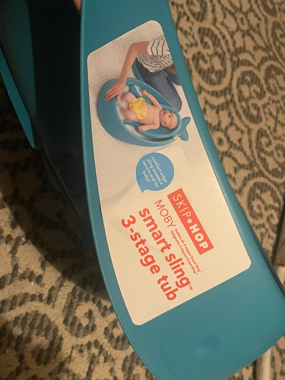 Selling a Skip Hop Moby 3-Stage Smart Sling Tub! It's in great condition and ready for a new little one. This tub grows with your baby through three stages, ensuring comfort and support as they develop. The smart sling cradles newborns, and can be adjusted as they grow bigger