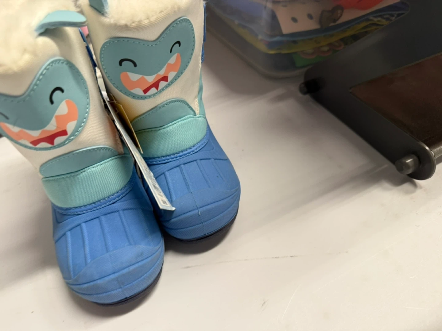 These adorable Cat & Jack snow boots are brand new and ready for some winter fun! They feature a cute shark design and are perfect for keeping little feet warm and dry. Size 9.