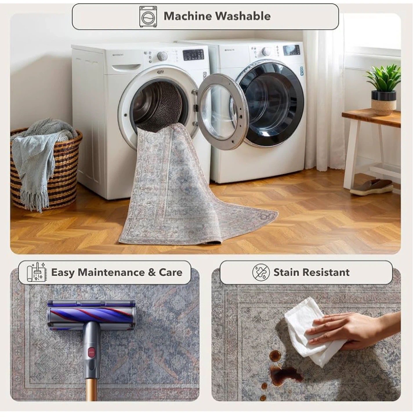 Open box Item. NEW Vintage Style with Modern Touch: This washable area rug combines boho elegance with contemporary design for a timeless look. Whether used as a living room rug, kitchen runner, or washable bathroom rug, it adds warmth and character to any space. Non-Slip Backing: Designed with a strong grip base, this washable rug stays securely anchored to your floor, reducing slips and movement. Perfect for busy spaces like hallways, kitchens, bathrooms, and laundry rooms, it provides both stability and peace of mind. Easy-Care & Machine Washable: Vacuum, sweep, or clean effortlessly with a robot vacuum; toss in the washer for deep care. Fold marks relax naturally when rolled opposite. Stain-resistant surface handles everyday messes like coffee spills with ease, keeping your rug fresh. Ideal for entryways, kitchens, living rooms, offices, porches, and more.