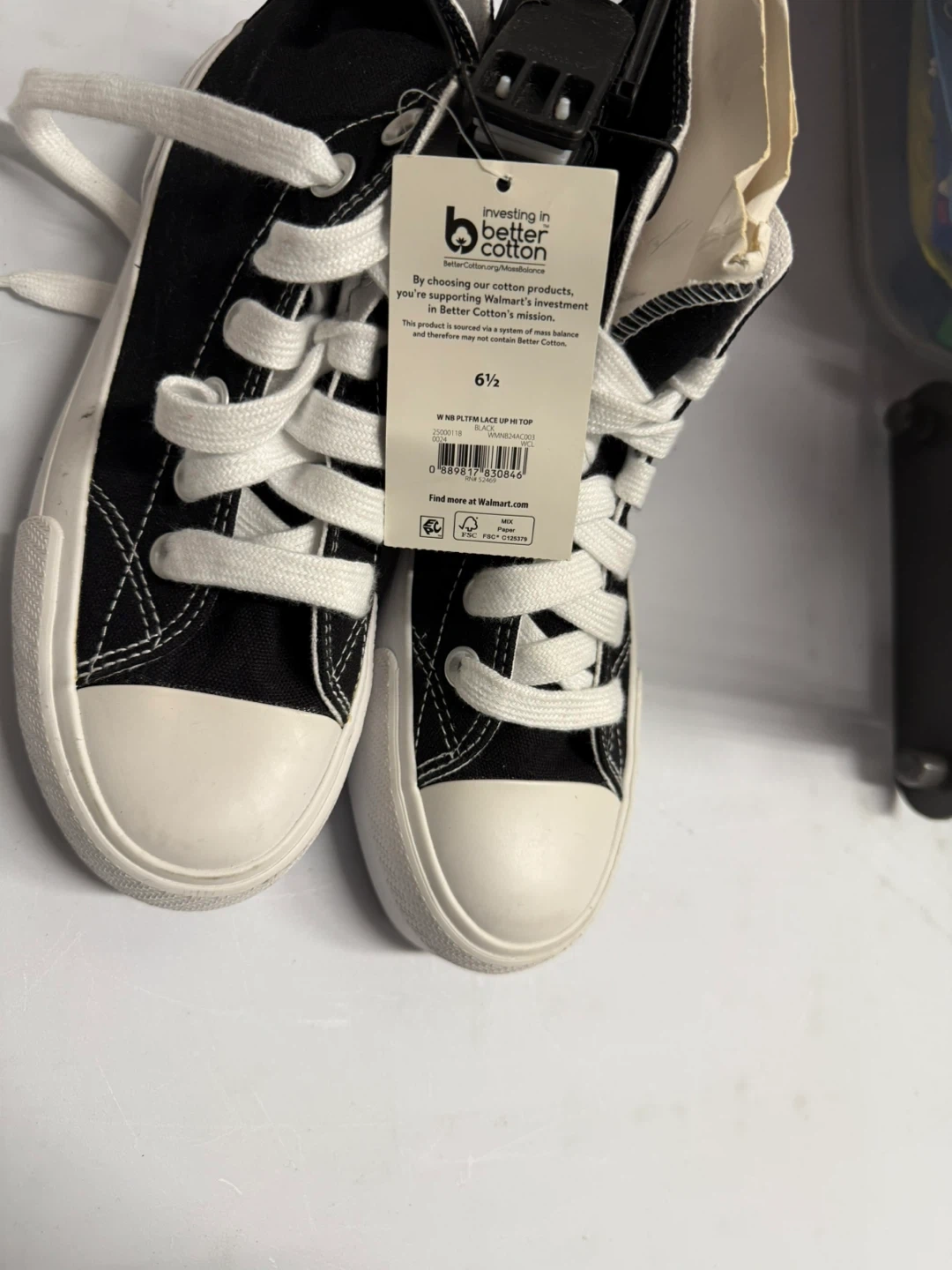 Selling a pair of black platform lace-up high-top sneakers! They are a size 6.5 and made with better cotton. Perfect for adding a bit of edge to any outfit!