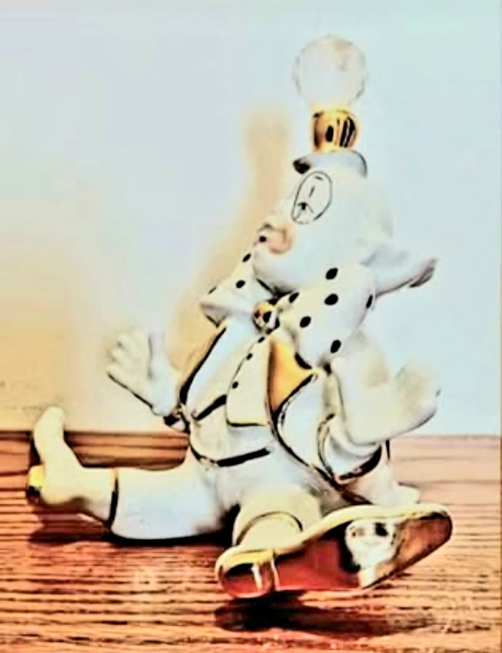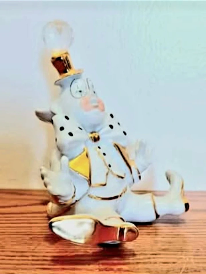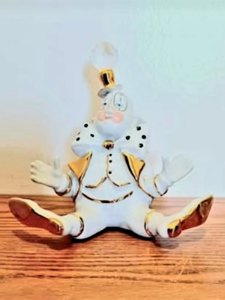 Vtg.Swarovski Crystal & 24 Kt Gold Hand Painted Porcelain Clown