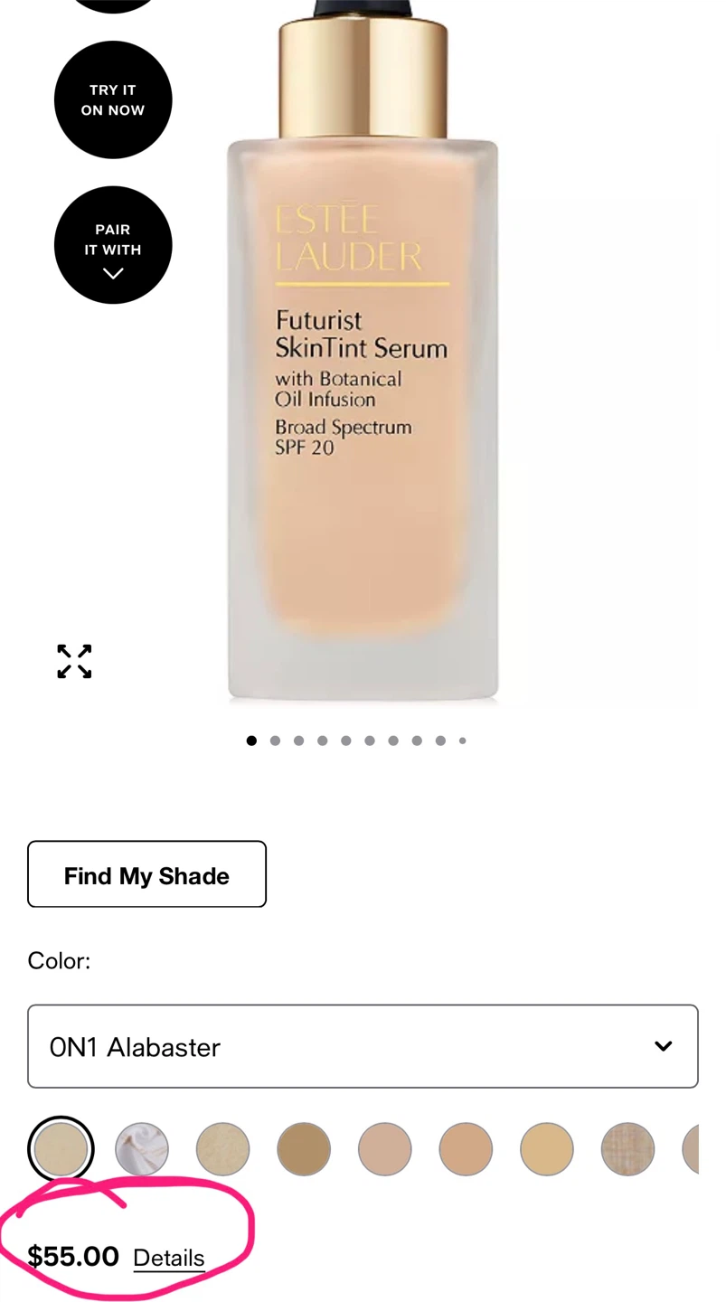 - Futurist SkinTint Serum with Botanical Oil Infusion, in color ON1 Alabaster