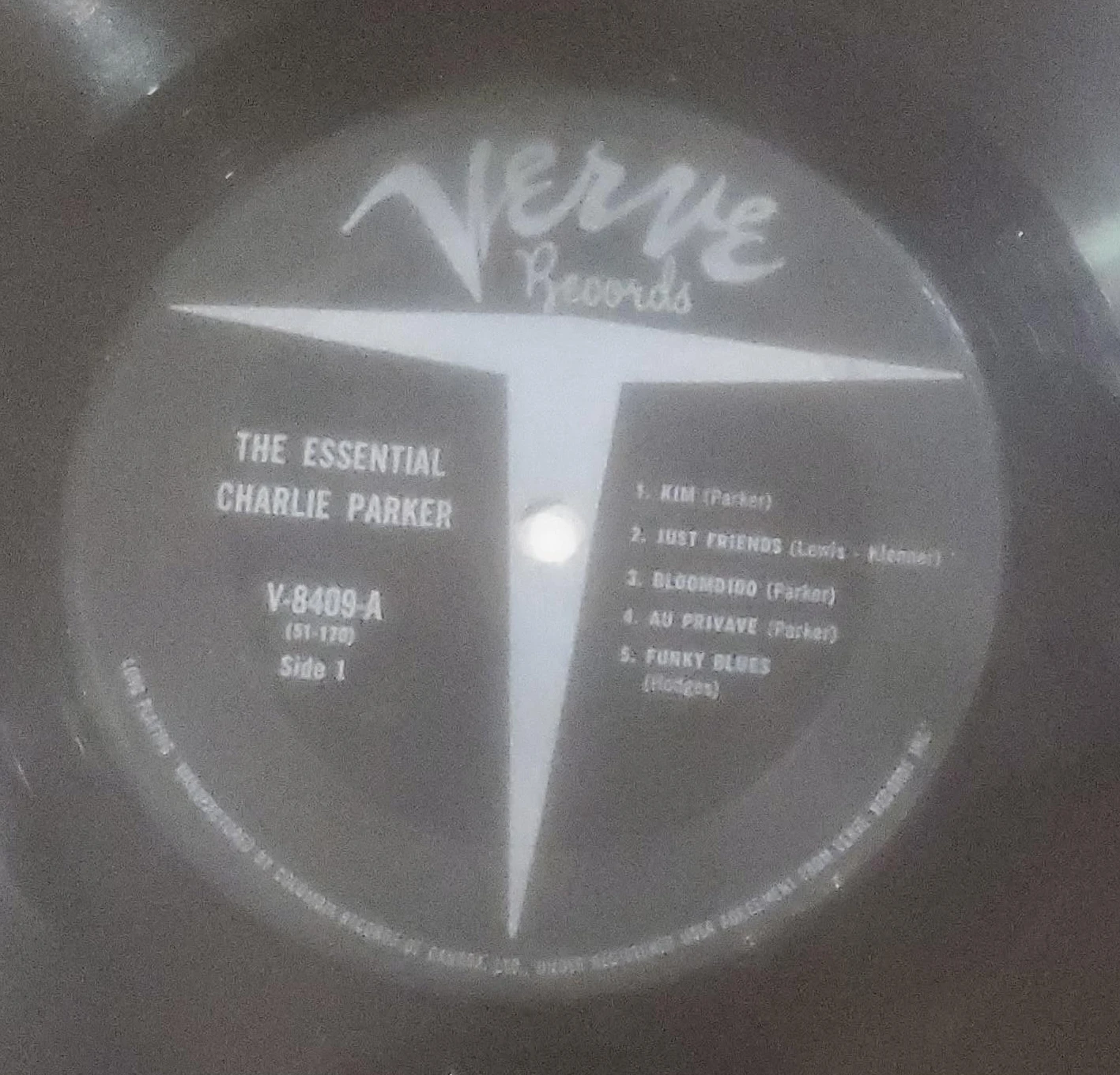 Selling a vinyl record of The Essential Charlie Parker by Verve Records! The record is labeled as V-8409-A (51-170), Side 1.