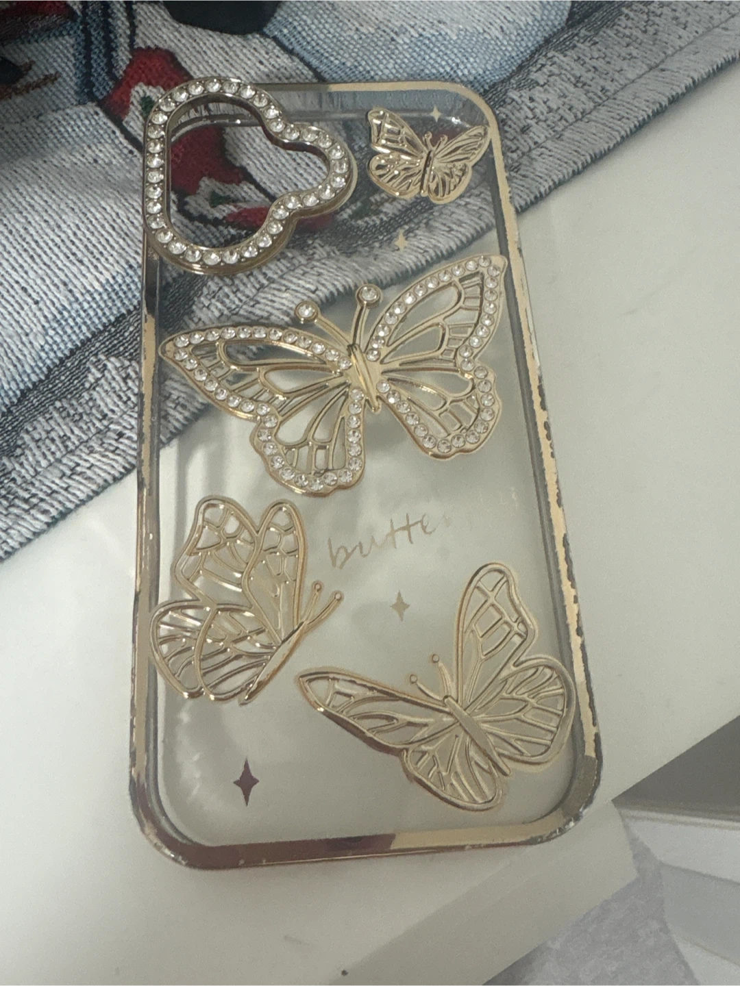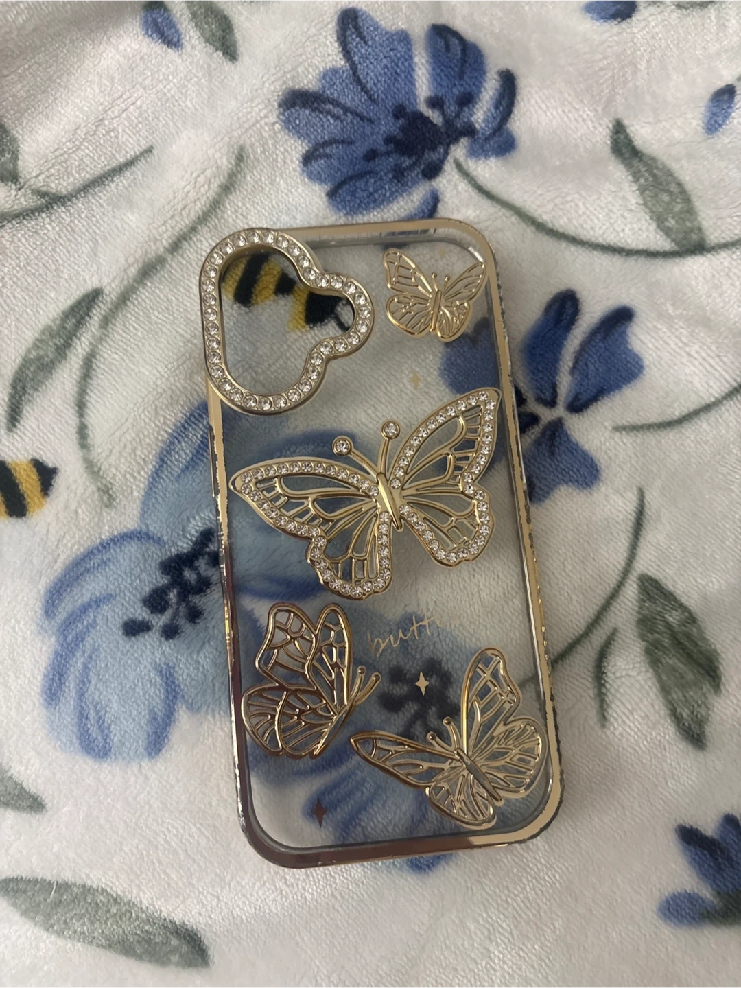 Selling a cute iPhone case with a gold butterfly design! It has a clear background with gold trim and sparkly butterfly accents. Perfect for adding a touch of glam to your phone pick up cash only