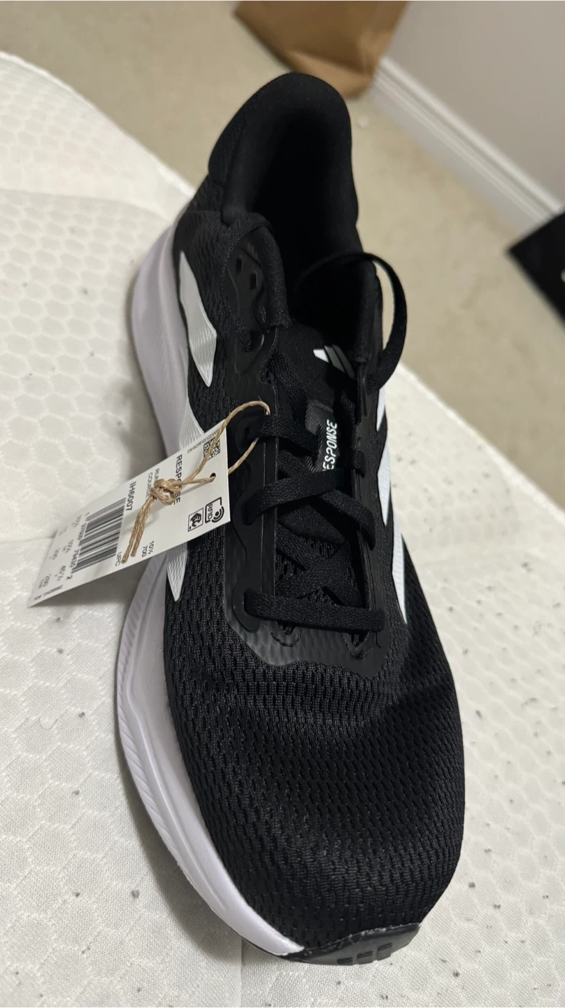 I'm selling a brand new pair of Adidas Response running shoes in black and white! They're size 11 US. The tag is still attached, so they're ready to go for your next run or casual wear