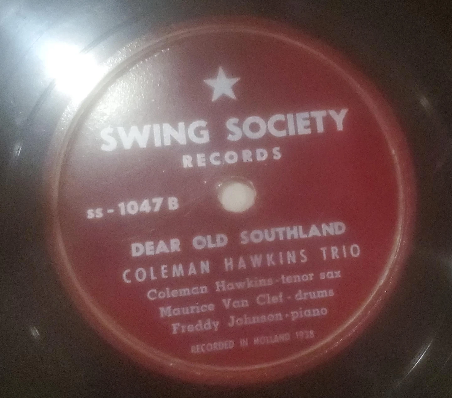 Selling a Swing Society record featuring the Coleman Hawkins Trio performing "Dear Old Southland"! The record label is SS-1047 B and it was recorded in Holland in 1938