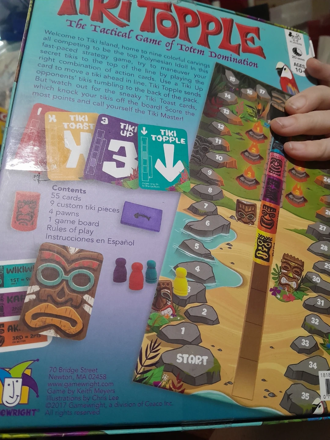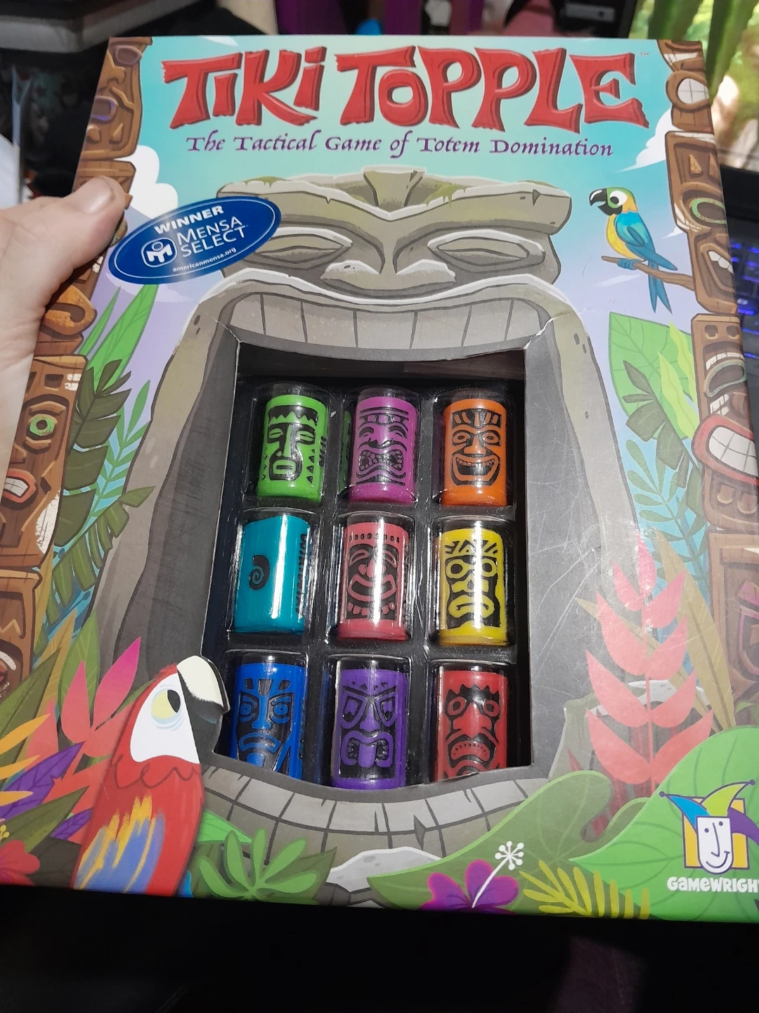 Get ready for some totem domination with Tiki Topple! This tactical board game is perfect for players aged 10 and up. The box includes 55 cards, 9 custom tiki pieces, 4 pawns, a game board, and instructions in both English and Spanish. It's a Mensa Select winner, so you know it's a brain-tickling good time!
