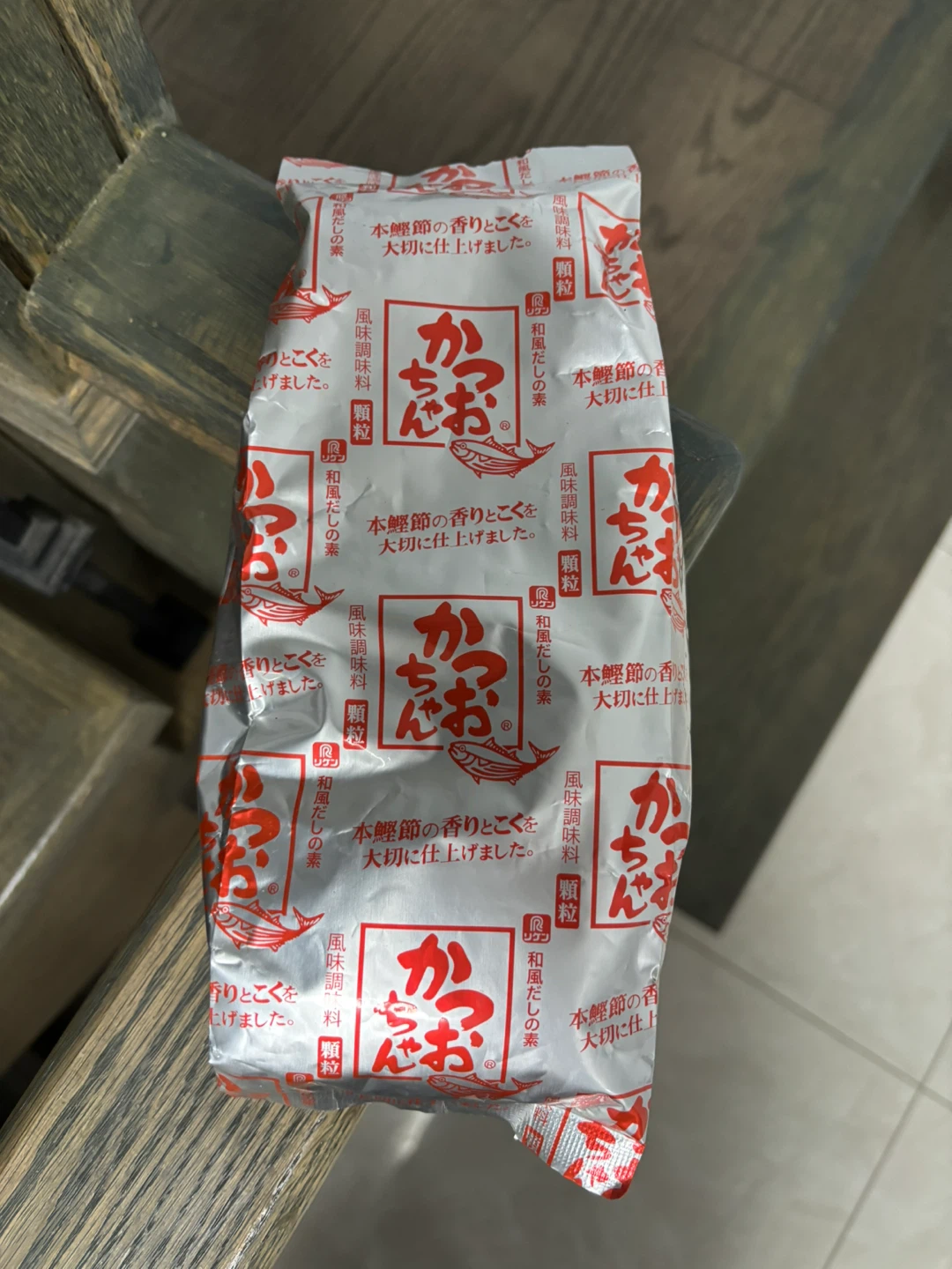Here's a package of Katsuo Dashi flavour seasoning! This seasoning is made with the aroma and richness of bonito flakes.
