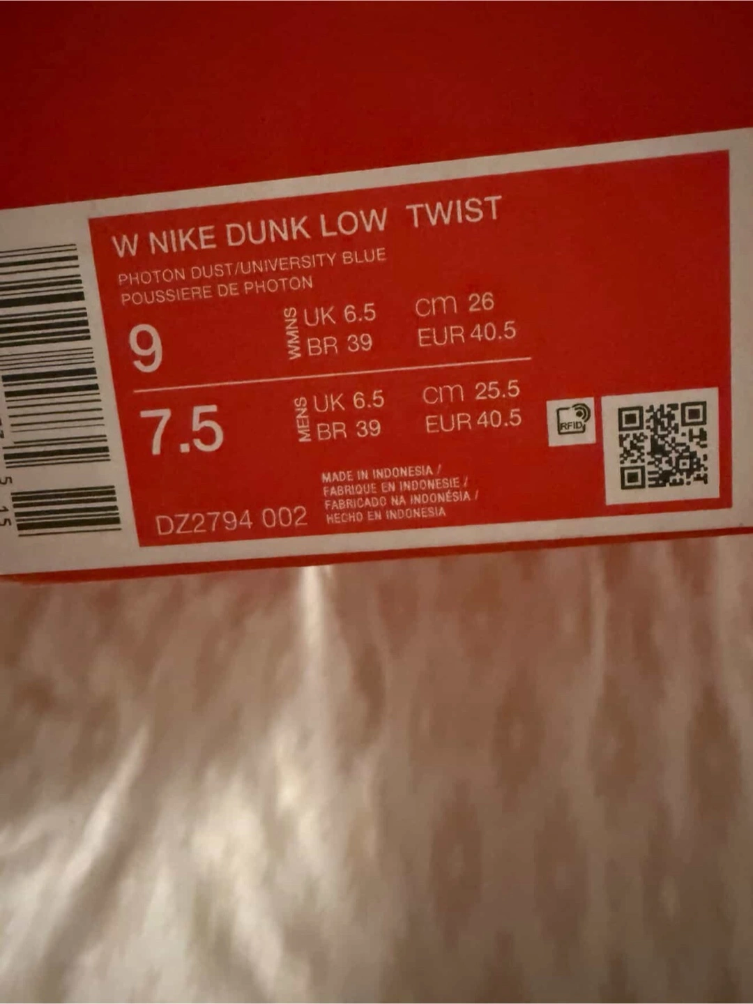Nike Dunk Low Twist - size 7.5 men’s/ 9 women - baby blue and white $175
