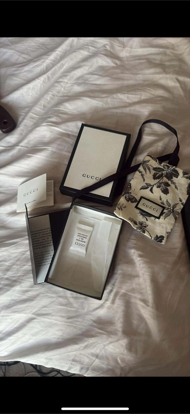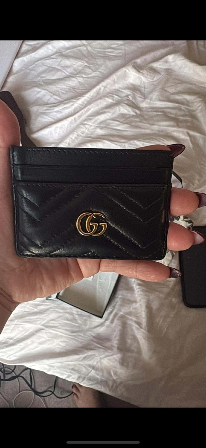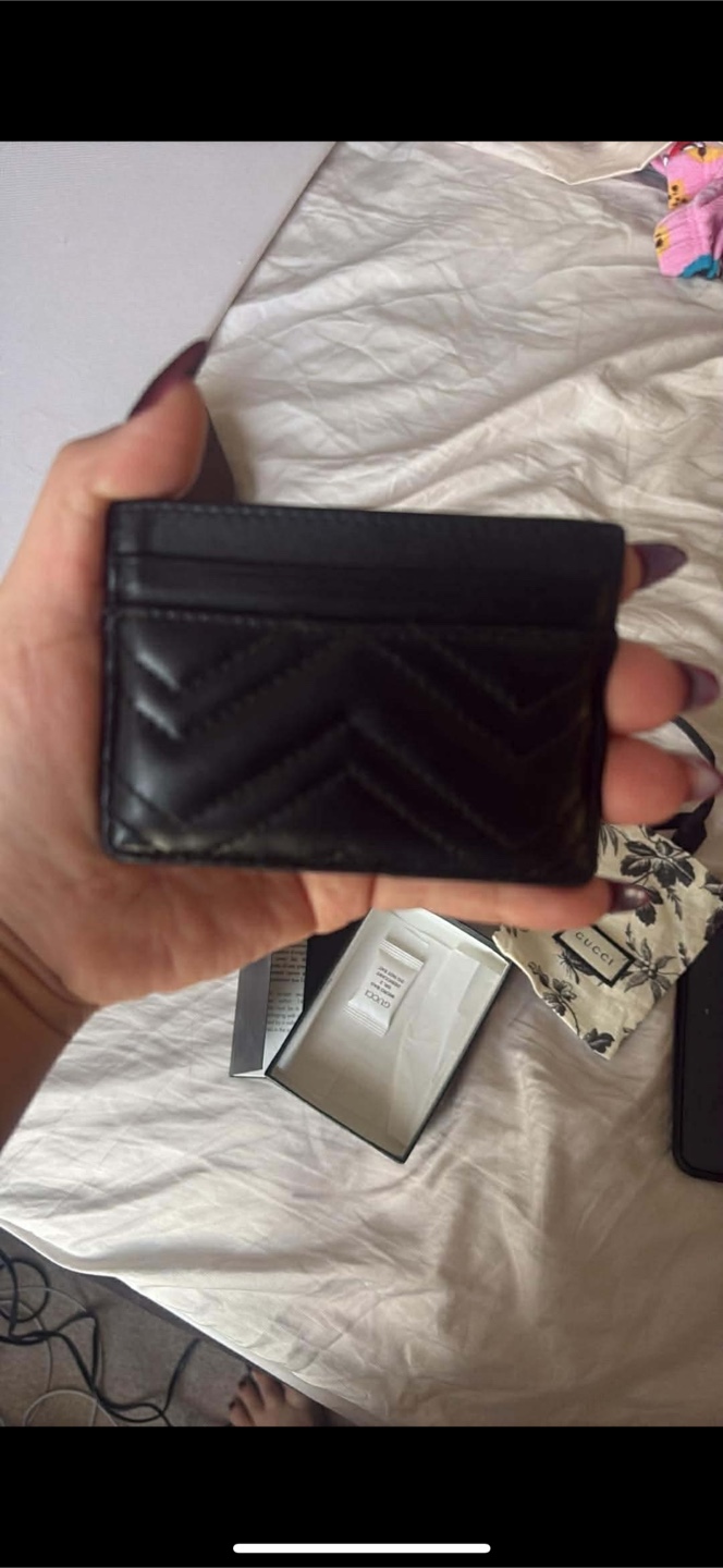 Selling a Gucci Marmont card case in black leather. It's in great condition and comes with the original box and dust bag. Perfect for carrying your essential cards in style!