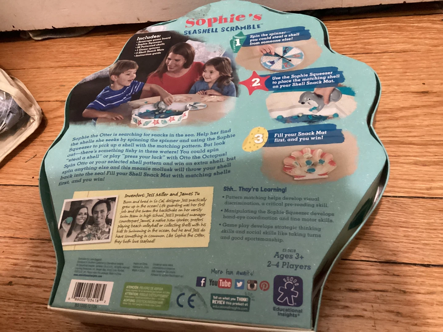 Looking to add a fun and educational game to your collection? Sophie's Seashell Scramble is a playful pattern-matching shell game perfect for kids ages 3 and up! It helps develop visual discrimination, critical pre-reading skills, hand-eye coordination, and fine motor skills. The game is designed for 2-4 players, making it great for family game nights or playdates