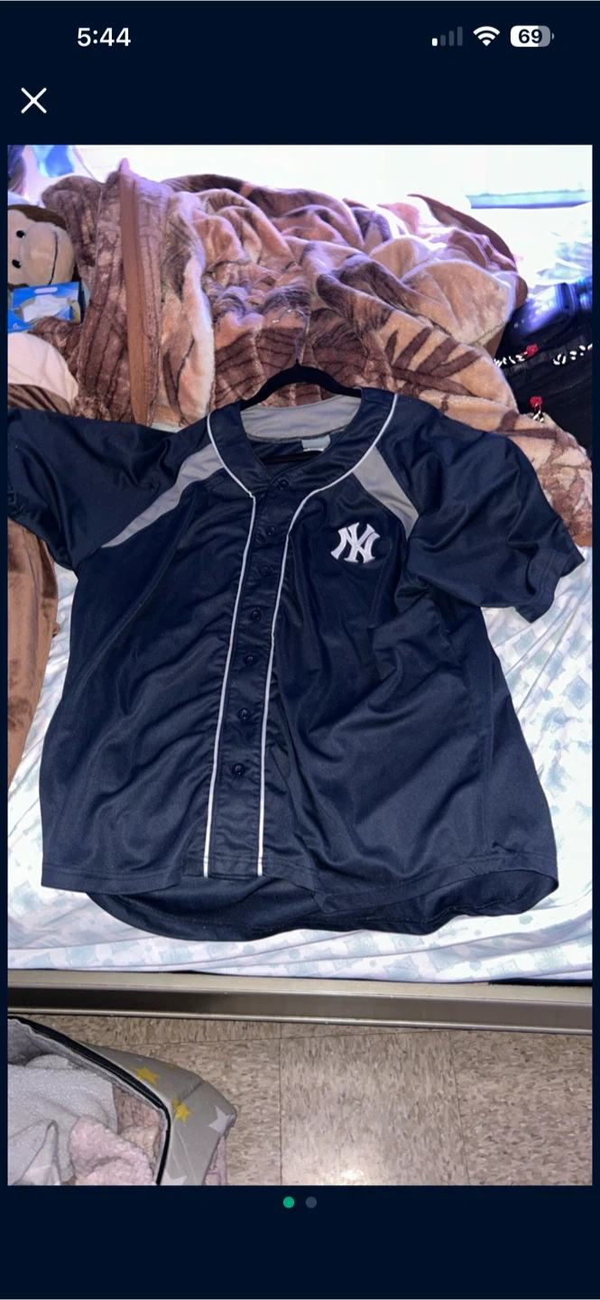 Selling a New York Yankees baseball jersey. It's in great condition and ready for a new fan! Perfect for showing your team spirit or wearing to a game