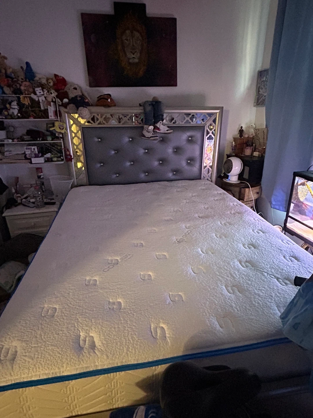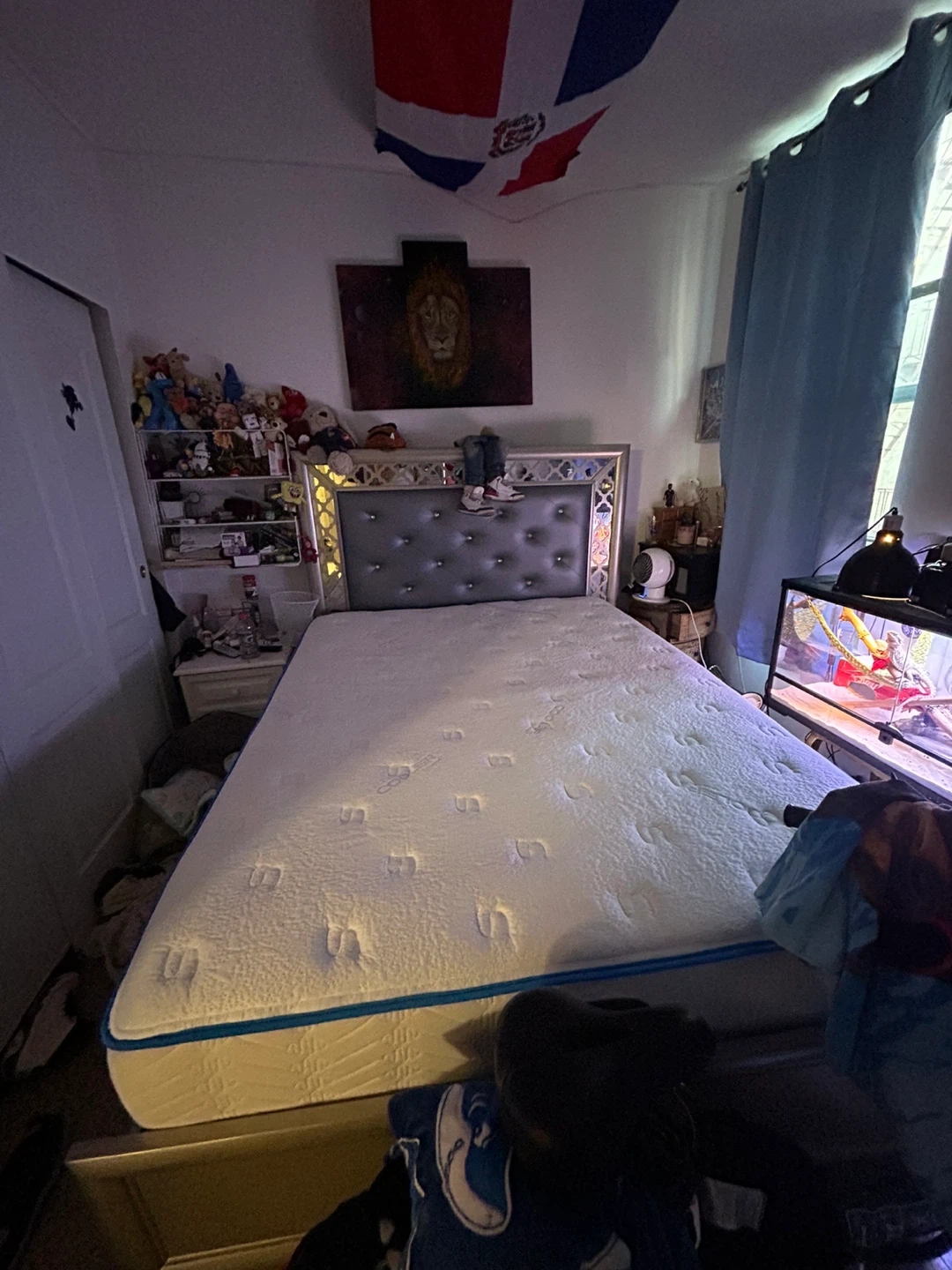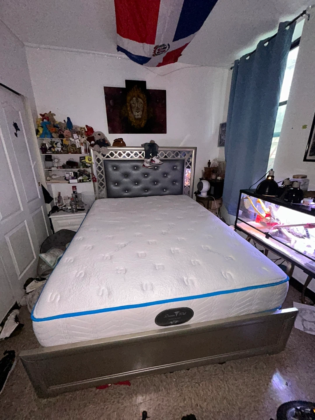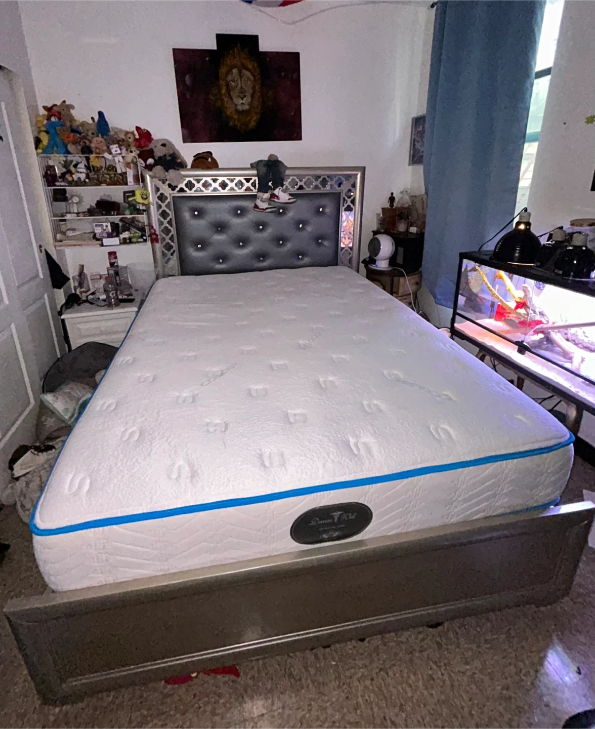 Selling a Dream World mattress! It’s in great condition and ready for a new home. The mattress features a stylish design with a blue accent line queen size