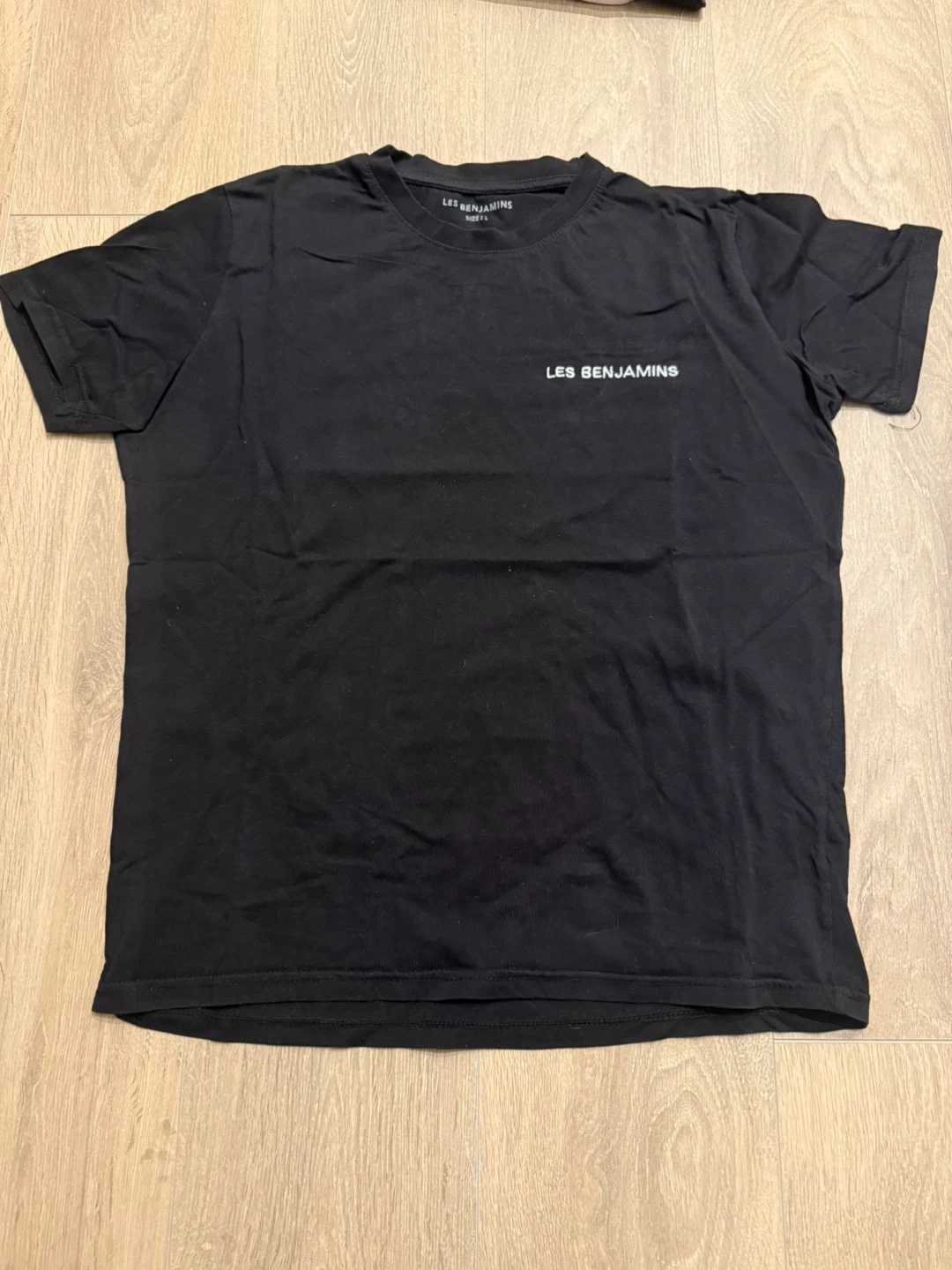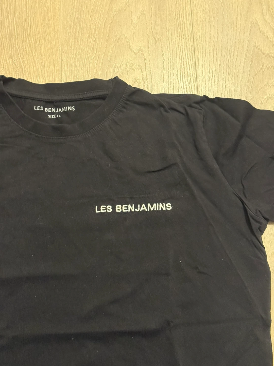 Selling a Les Benjamins Authentic black t-shirt in size large. It's in great condition and ready for a new wardrobe! Selling it since im a student and kept the price reasonable since the retail price is 65-80+ but still open for chats.