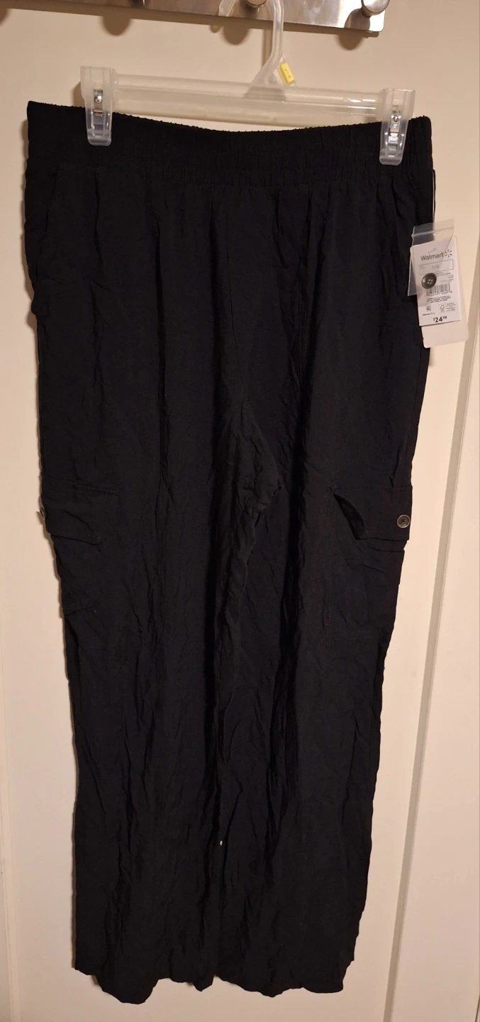 Selling a pair of Wild Skye black cargo pants in size large. These pants are in great condition and were originally bought for $24.98. They're perfect for casual wear or outdoor activities!