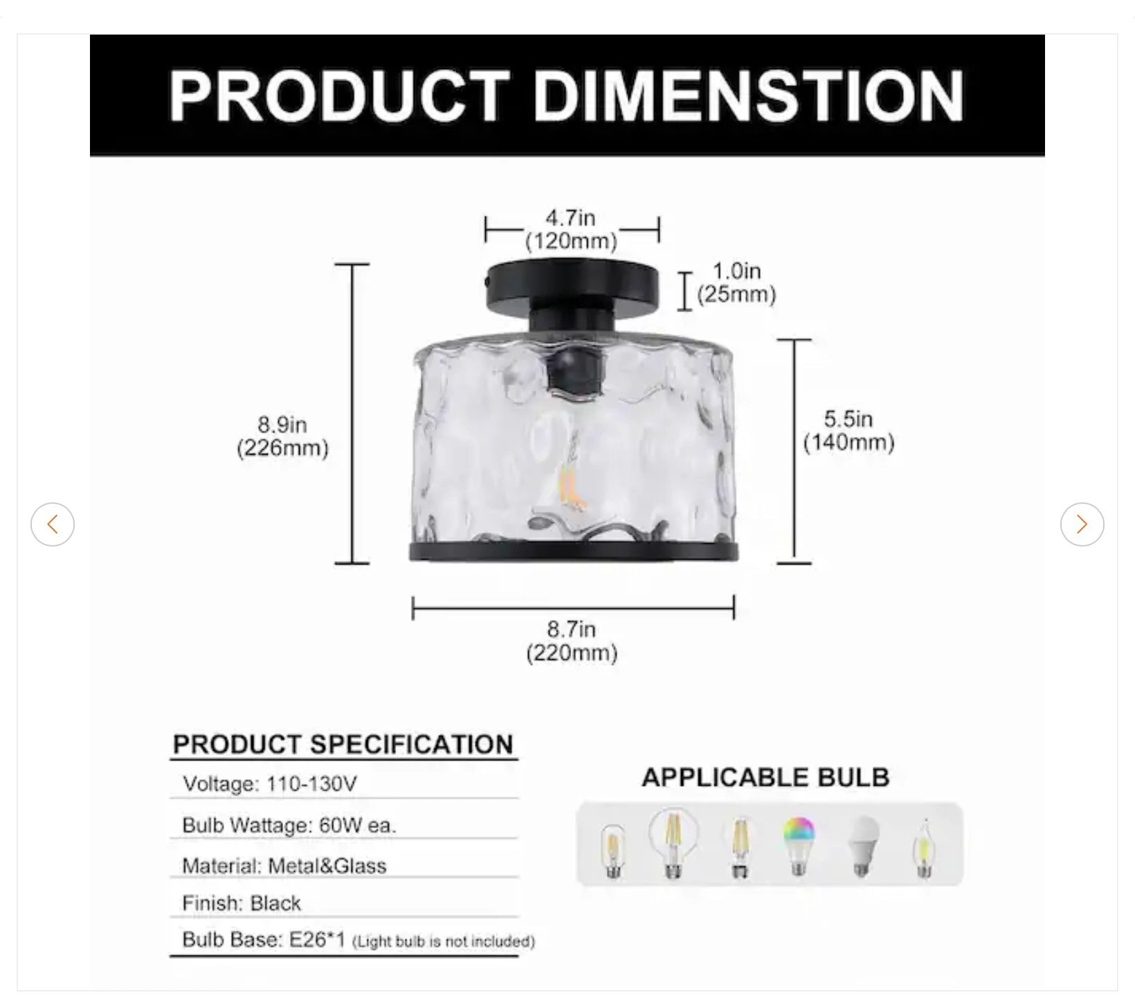 Buy & Sell9 in. 1-Light Black Modern Semi Flush Mount Ceiling Light - New9 in. 1-Light Black Modern Semi Flush Mount Ceiling Light - New$45Brand New 9 in. 1-Light Black Modern Semi Flush Mount Ceiling Light Industrial Clear Water GlassWHERE TO MEETCheck LocationView MapSELLERBetyArcher Heights280 reviews0 chats·0 favorites·4 viewsSEND CHAT TO SELLERHi Bety! I’m interested in your listing.Hi Bety! I’m interested in your listing.Get the Karrot app to chatSign In to chat