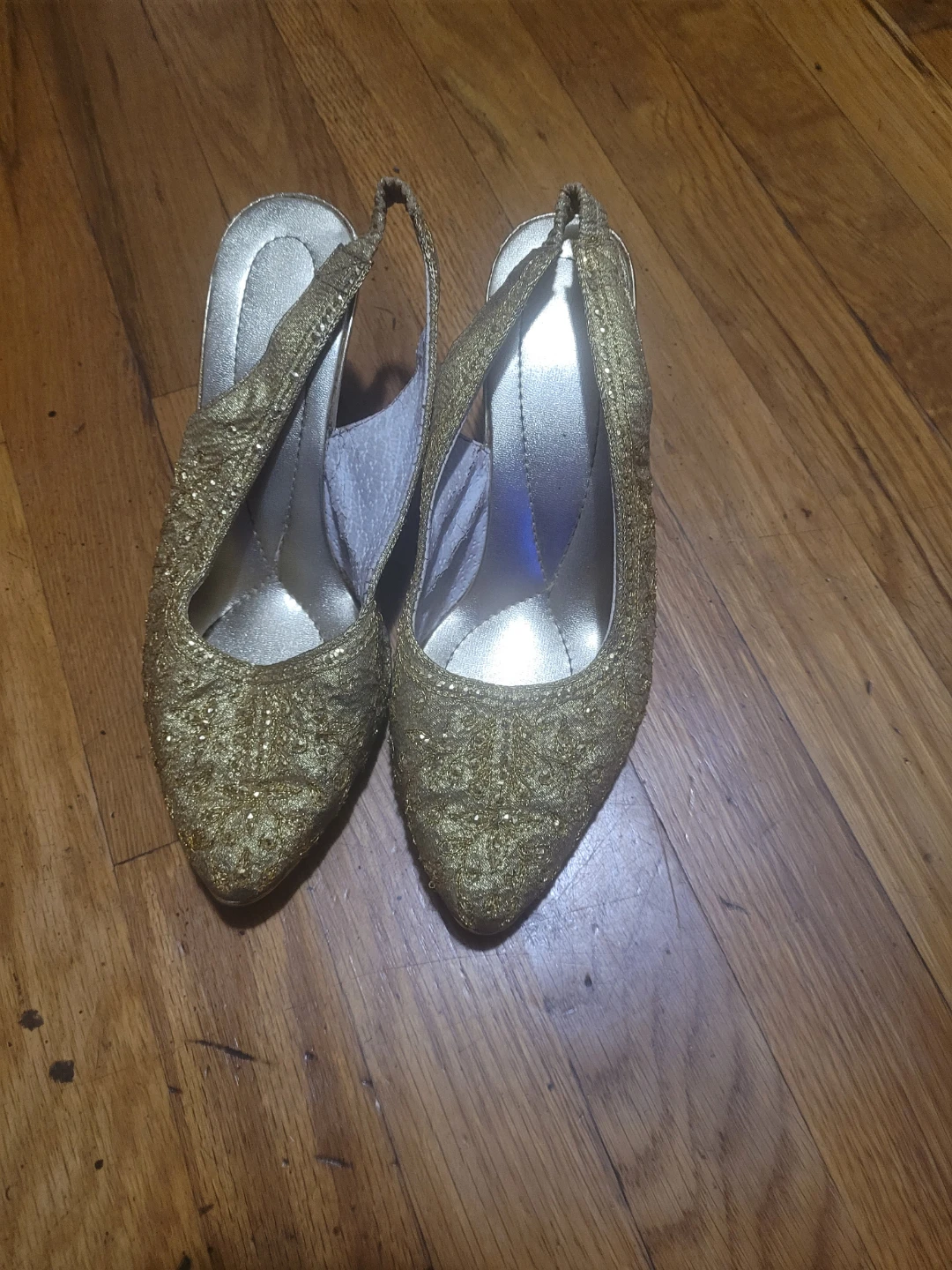 Selling a pair of gold slingback heels. These are perfect for a night out or a special occasion. They are in great condition and ready for a new owner