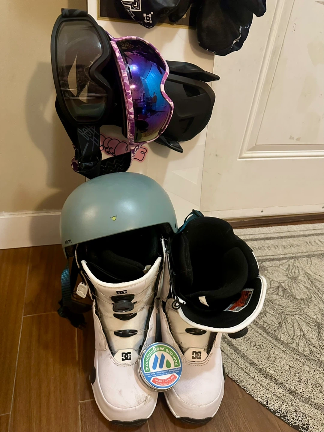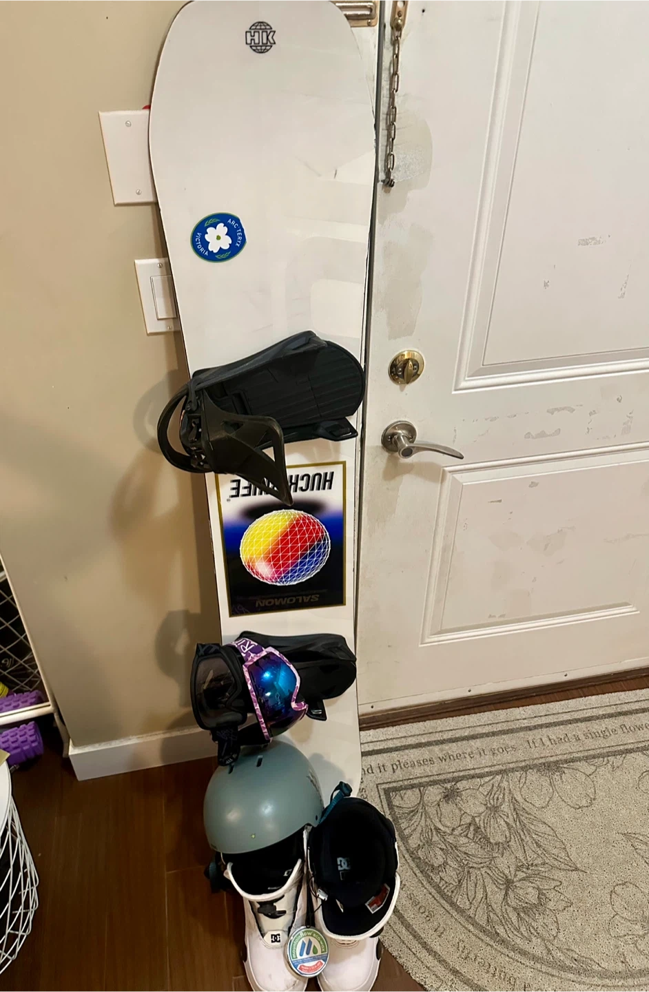Selling a complete snowboarding set! Includes a Salomon snowboard, DC boots, Anon helmet, goggles, and gloves. Everything you need to hit the slopes!