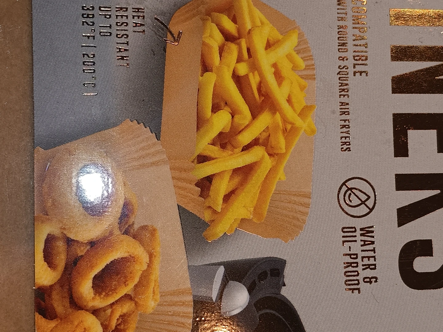 Selling a container of Moc Air Fryer Liners. There are 200 liners in the container. These liners are compatible with round and square air fryers. They are also water and oil-proof and heat resistant up to 392°F (200°C).