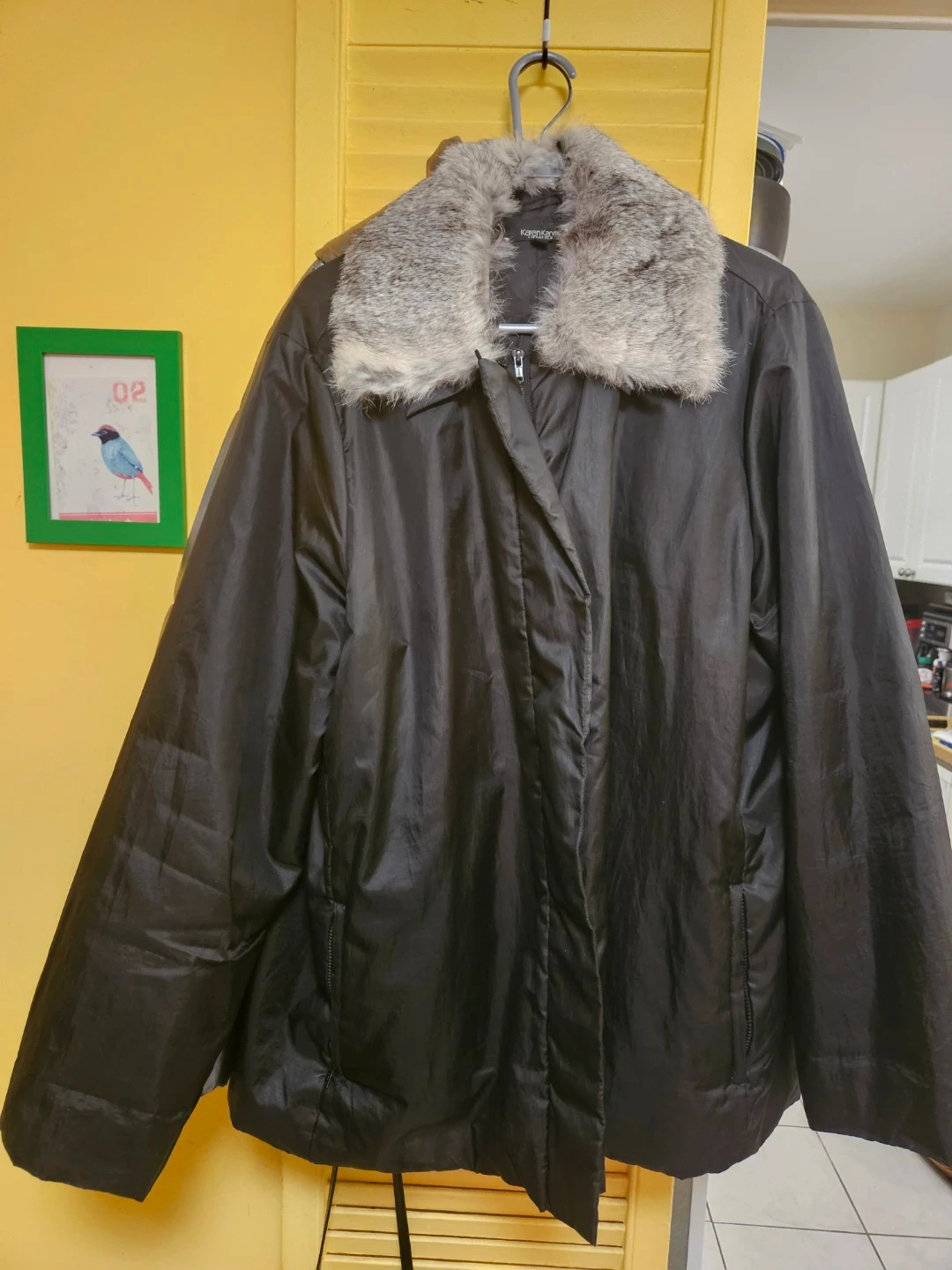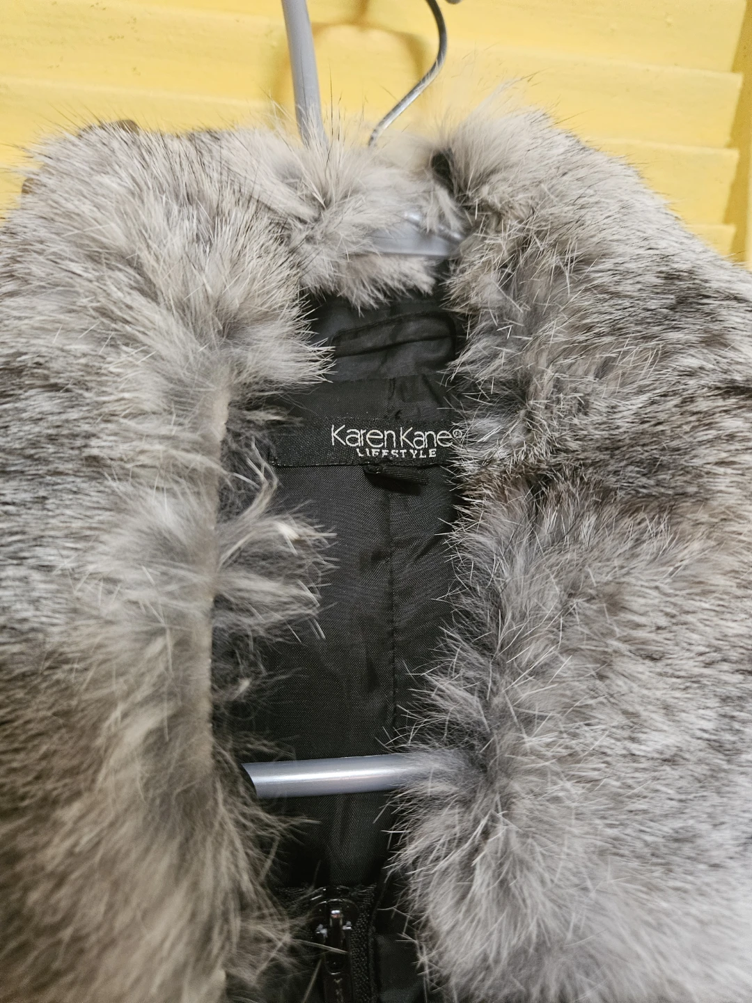 Stylish black Karen Kane coat featuring a chic attached faux fur collar. This coat is perfect for adding a touch of elegance to your wardrobe. It's in great condition and ready for a new owner! Price negotiable. Super stylish. Bought in NY.