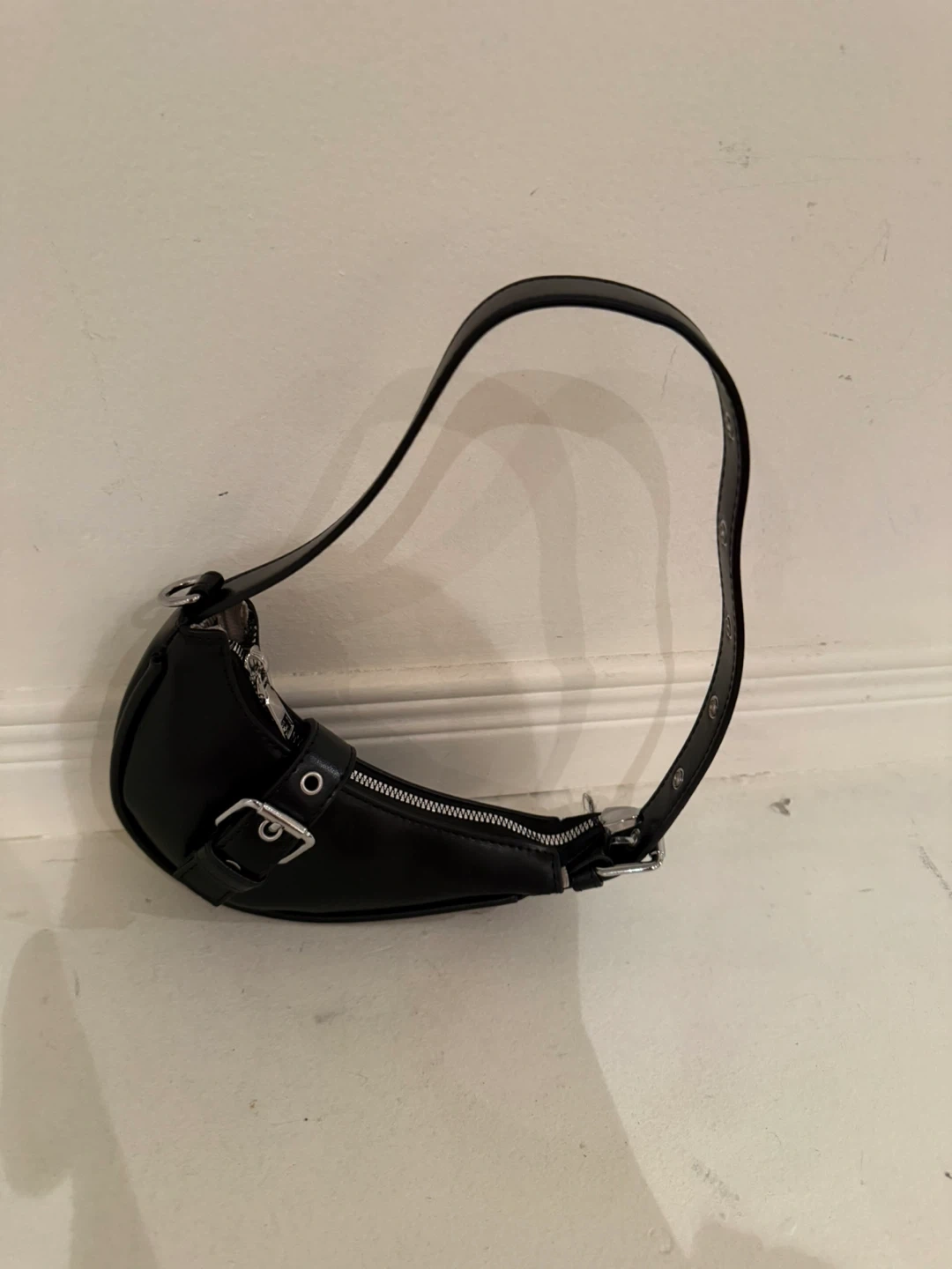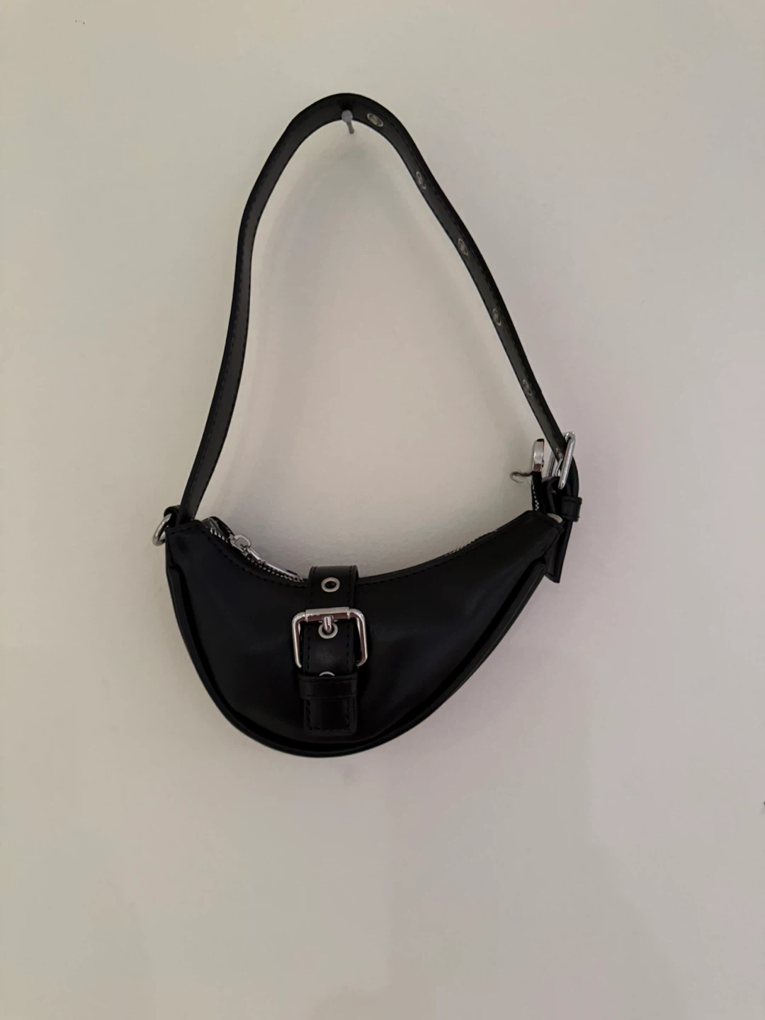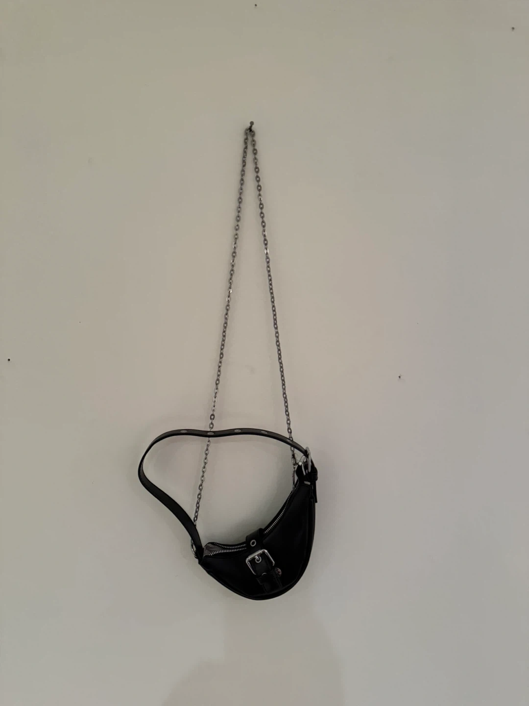 Cute black mini shoulder bag in great condition! It has a short shoulder strap and a zip closure